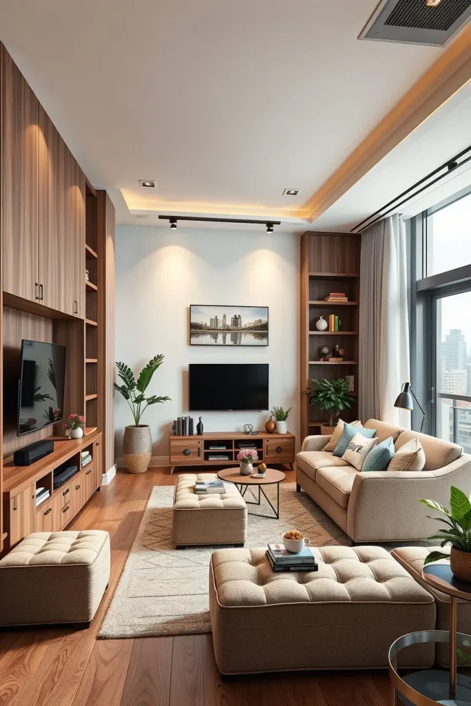 Compact Apartment Living Rooms With Smart Storage
