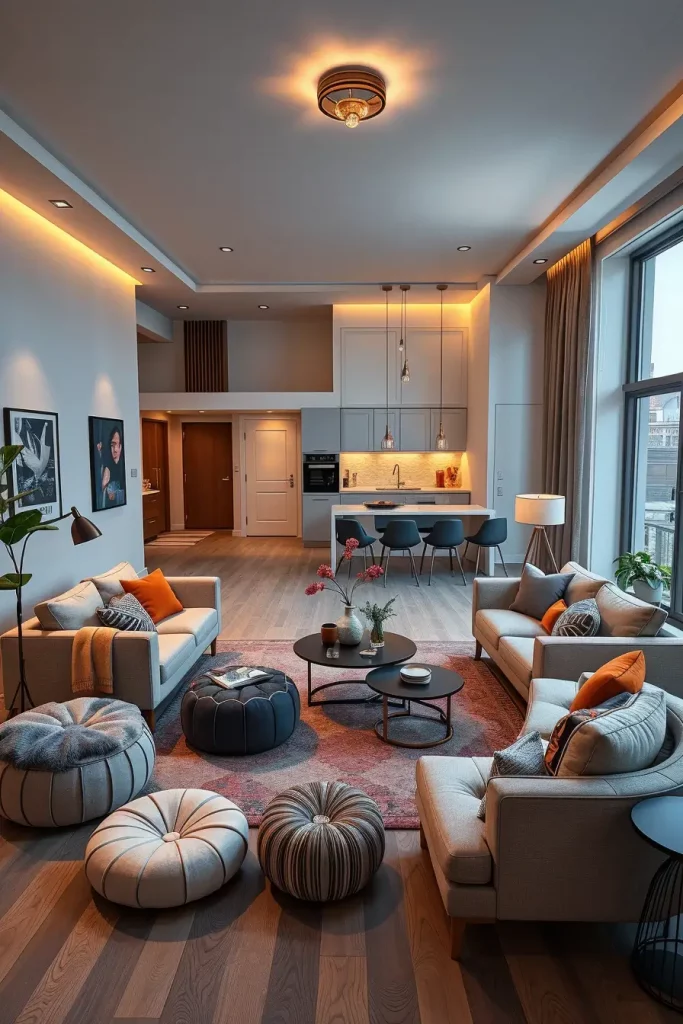 Lastly, in the case of couples, the designs of the living room in apartments in 2026 are based on intimacy and functionality. A small area can be comfortable instead of small when properly designed. I tend to recommend a combination of neutral colors and some personal accent that would include both styles of partners.