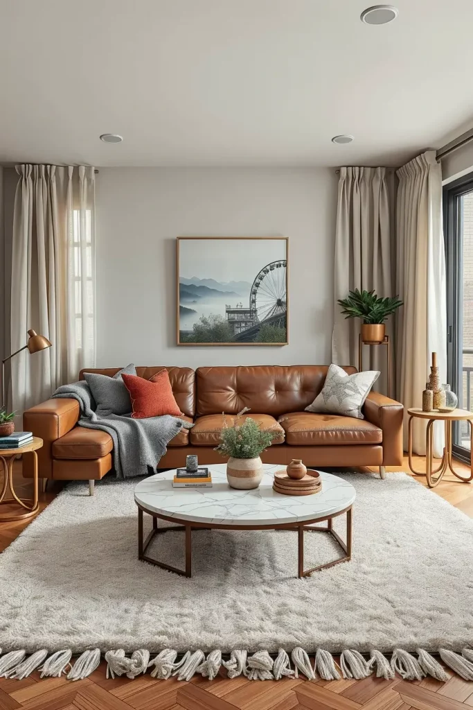 Textures will also be significant in the design of the living room of apartments in 2026 as the colors. I tend to recommend adding layers of fabric, finishes and materials to add depth and sophistication. As an example, a smooth leather sofa may be made cozy with a wool blanket, and a marble coffee table may be contrasted with a patterned carpet.