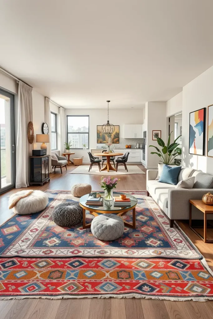 Apartment Living Room Designs With Accent Rugs