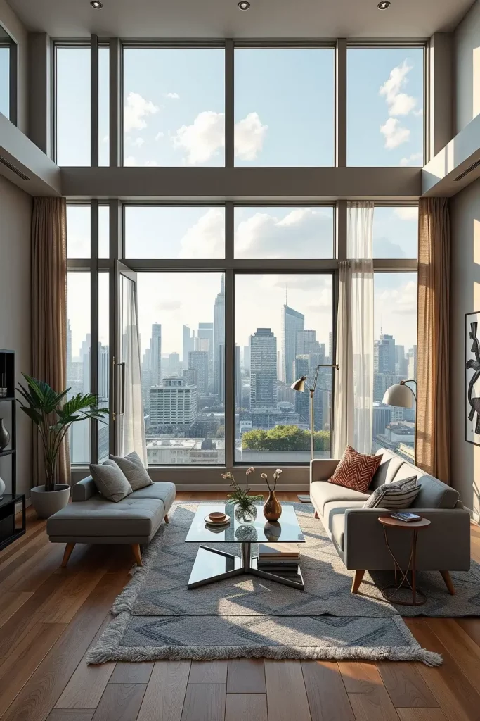 The other thought-provoking concept in the design of apartment living rooms in 2026 is the emphasis on open windows and views to the outside. I usually recommend the application of furniture layouts that look out to the windows so that the view itself can be a center of interest in the room. This design is especially effective in urban apartments where there is a view of the skyline or apartments where there is a view of nature.