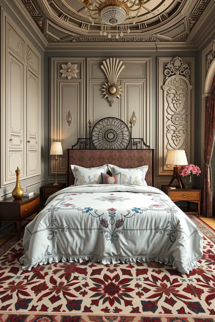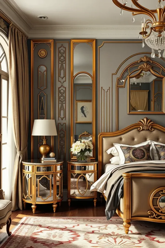 An Art Deco Bedroom can be enhanced much easily with aesthetic accessories. I tend to embellish mirrors, customizing metallic finishes, and accent lights, this allows me to add ambience to the room instantly. This remains a practical approach because accessories can completely alter a room without a fully-fledged renovation. A mirrored nightstand or a chrome lamp for example, while stunning in its own right, serves a dual purpose of reflection. This allows a room to feel bright and inviting.
