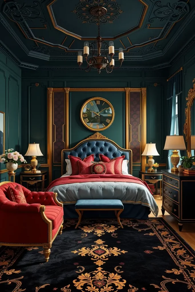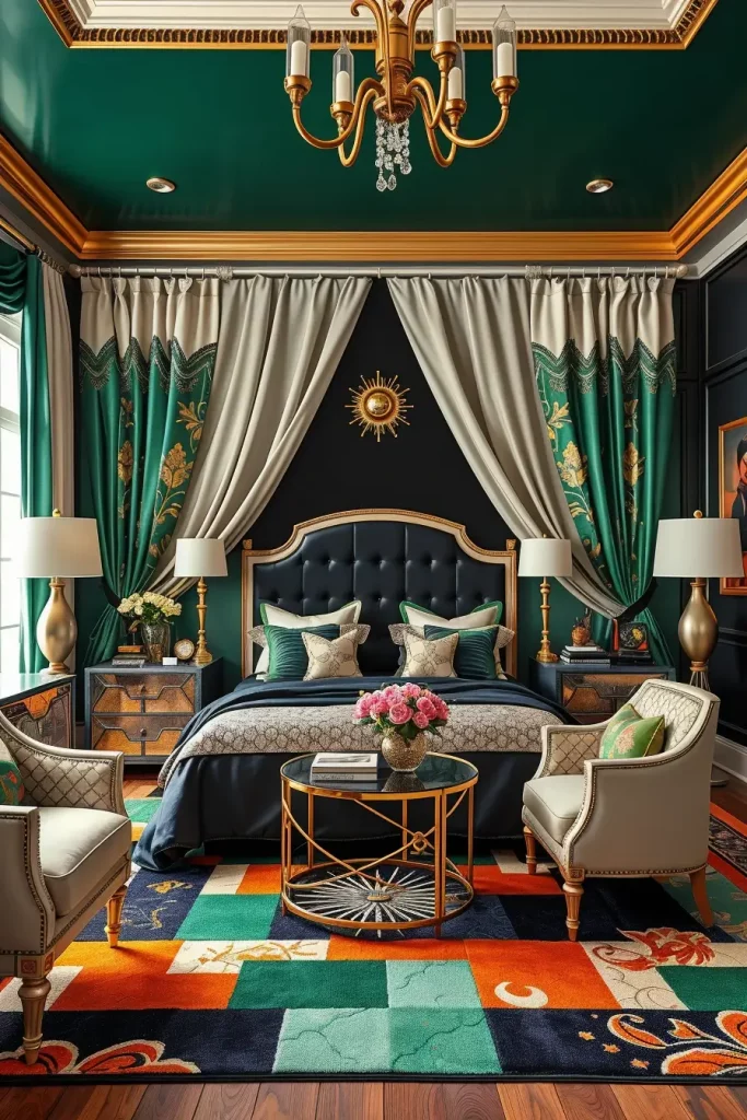 In my experience, strong contrasts give a room a splash of energy. Better Homes & Gardens says bold color schemes is a way to keep classic designs from feeling outdated. I see this principle working every time in Deco Revival bedrooms.