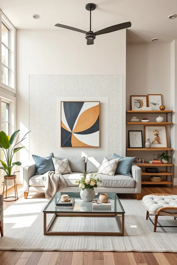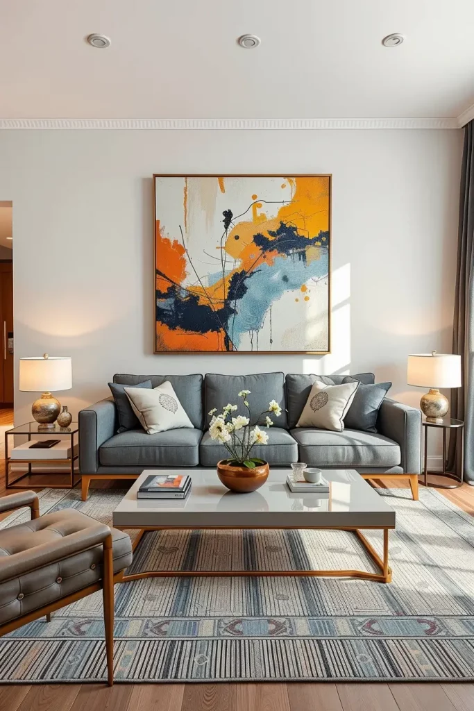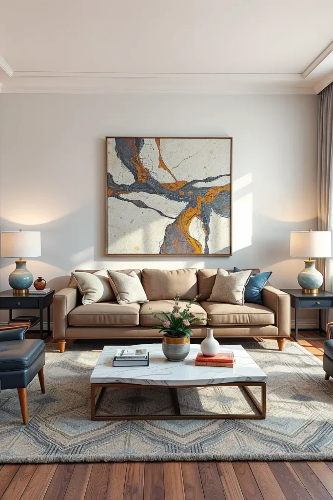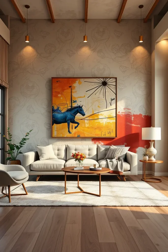 As an example, an abstract mural with big strokes looks great with a minimalist sofa and a coffee table with neutral tones. Conversely, metallic accent walls are vibrant with the use of velvet furniture and glass decor. The key to avoiding visual conflict is to balance proportions and color palettes.