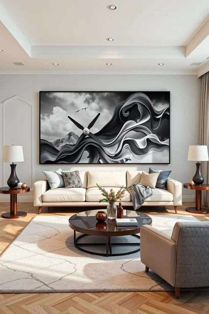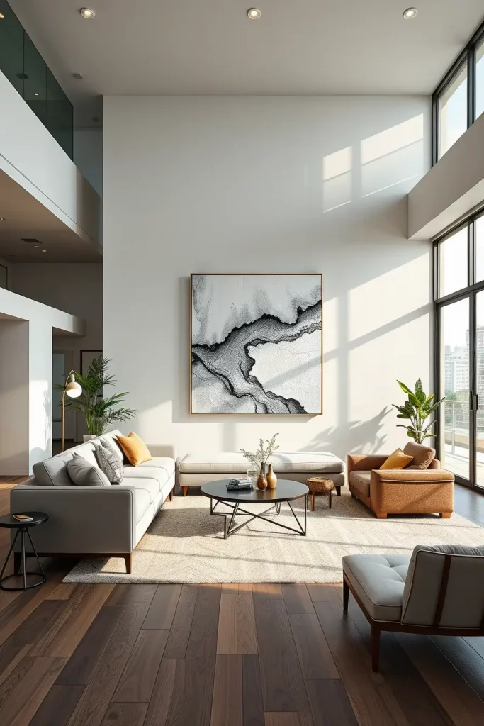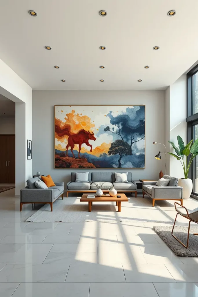 In my experience, oversized canvases are also a great idea in open-concept spaces, as they create a separation between areas without the use of physical barriers. This practice has both aesthetic and functional benefits in contemporary homes as stated by Dwell Magazine.