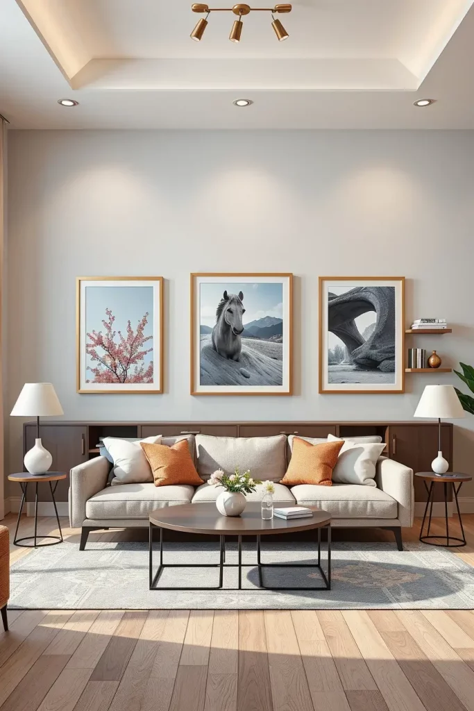 One of the most convenient methods of introducing art in the house is digital prints that will give a modern and sleek look. I tend to suggest them to clients who are interested in flexibility in changing their interiors without having to invest in large scale permanent art. The prints are easily interchangeable based on trends, moods, or season themes, which makes them practical to dynamic households.