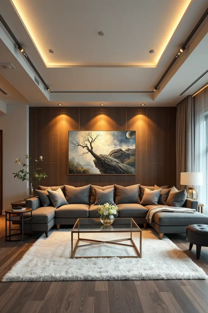 To add more power to this section, I would incorporate layered lighting, LED strips behind the wall panels or color-changing bulbs. These additions underline the futuristic element and make walls change with the technology.