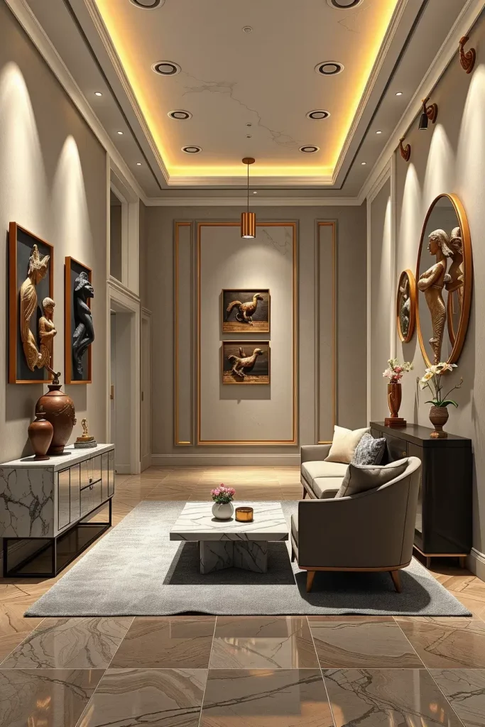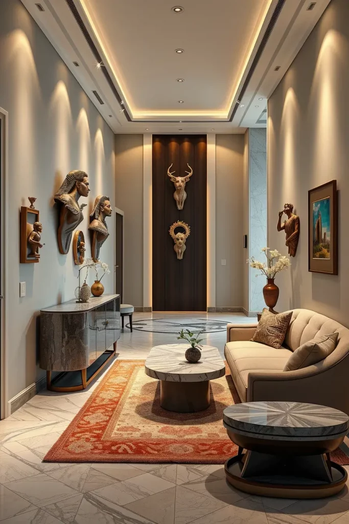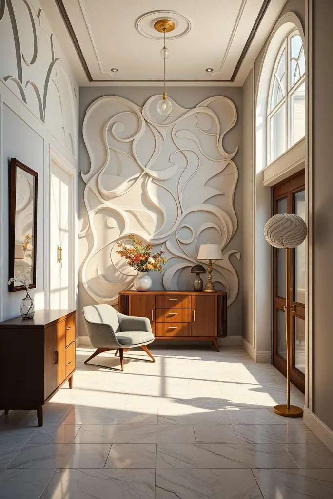 To do so, I tend to choose contemporary wall-mounted sculptures or relief-type artworks. Sculptural accents work well with furniture like curved sofas, marble coffee tables or slim sideboards. Lighting is essential–spotlights or sconces emphasize the textures, throwing interesting shadows.