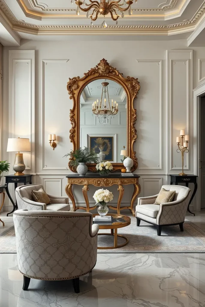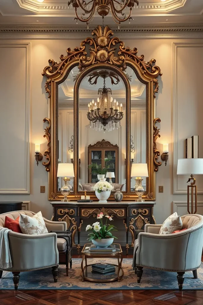 I pair these mirrors with other items, which are complementary to them like velvet armchairs, small console tables, or decorative lighting fixtures. The artistic frame, be it carved wood, metallic or abstract design, gives the wall some depth, and makes the mirror a focal point and not a utility.