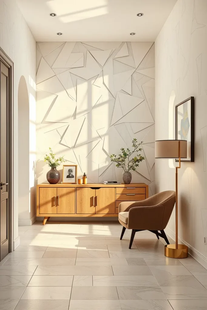 Geometric patterns are now a trademark of modern interiors. When used on walls, they give a systematic but artistic touch that is contemporary and classic. I apply them frequently in living rooms or bedrooms to create a contrast to monotony and add energy. A striking geometric wall quickly turns boring architecture into a dynamic center piece.