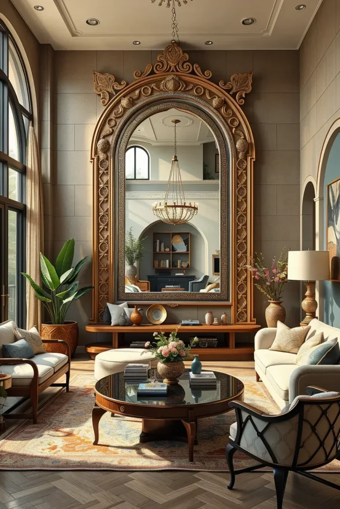 My own projects have shown me that handcrafted mirrors when chosen carefully gives an air of elegance to the room. The designers of Architectural Digest often recommend using statement mirrors as pieces of artwork, an approach I find great in small rooms with limited wall space.
