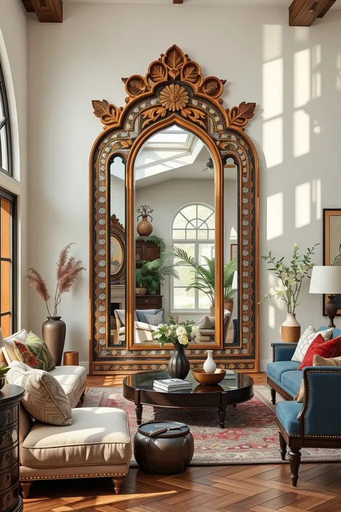 Mirrors are practical in serving their purpose, but when created by skilled craftsmen, they become practical pieces of art. In many interiors that I have done, a handcrafted mirror serves as an accent that captures light while making the space feel bigger. Handcrafted mirrors are not simple and come with ornate wooden frames, mosaic inlays, and hand-forged metal borders.