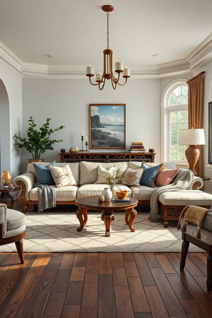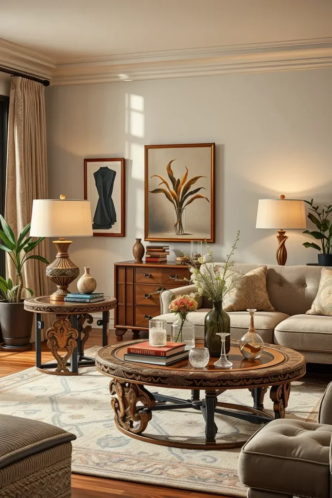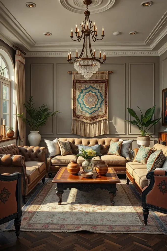 As I blend classic and artisan styles, I pay attention to the balance of texture, color, and shape. Each piece should complement and not clash with the existing décor. A wonderful example is the blend of a carved wooden coffee table with brass inlays to a living room with Chesterfield sofas. The addition of artisan ceramic vases or hand woven wall decor introduces texture while honoring the room’s geometric order. This mix allows me to create a balance between timeless design and artisan elegance.