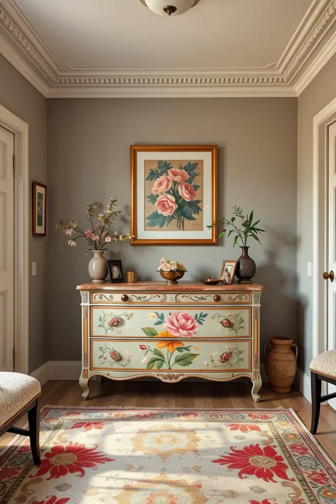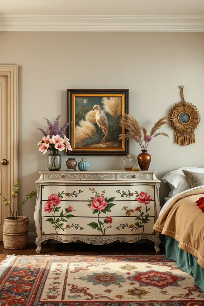 Chests and dressers that have hand-painted designs come alive with artistry and storytelling. Every piece transforms to fully colorful and crafted furniture that becomes functional art. Every hand-painted piece is ideal for those who enjoy art in their lives in a functional way.
