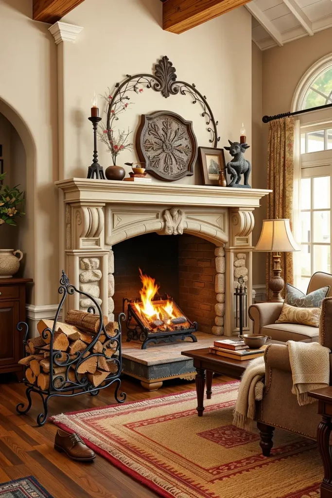 I often recommend wrought iron or copper firewood holders with intricate details. These not only serve an operational role but also enhance the fireplace’s beauty. Hearths can also serve as a canvas for artistry with the use of stone or ceramic accents like trim tiles or sculptural tools.