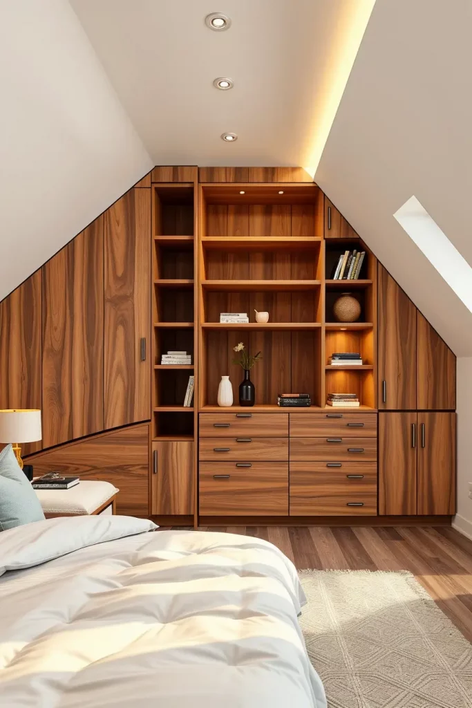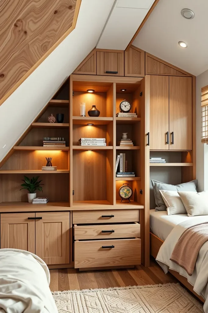 One of the best methods of making maximum use of attic bedroom is by designing built-in storage on sloping walls. Once I get to this kind of a project, I will start off by mapping out every angle and vertical surface to determine where the cabinetry can be fitted in without saturating the room. Built-ins are constructed in accordance to the natural slope that forms a deliberate flow without wasting space. This will make sure that even the lowest parts of the attic will be useful and not a hindrance.