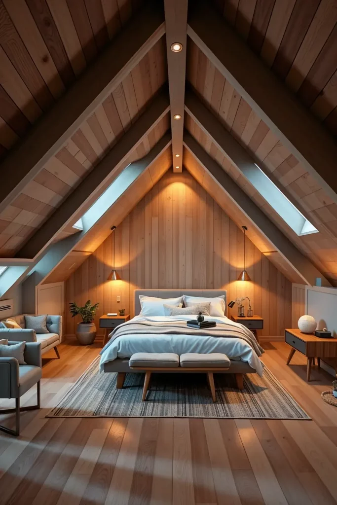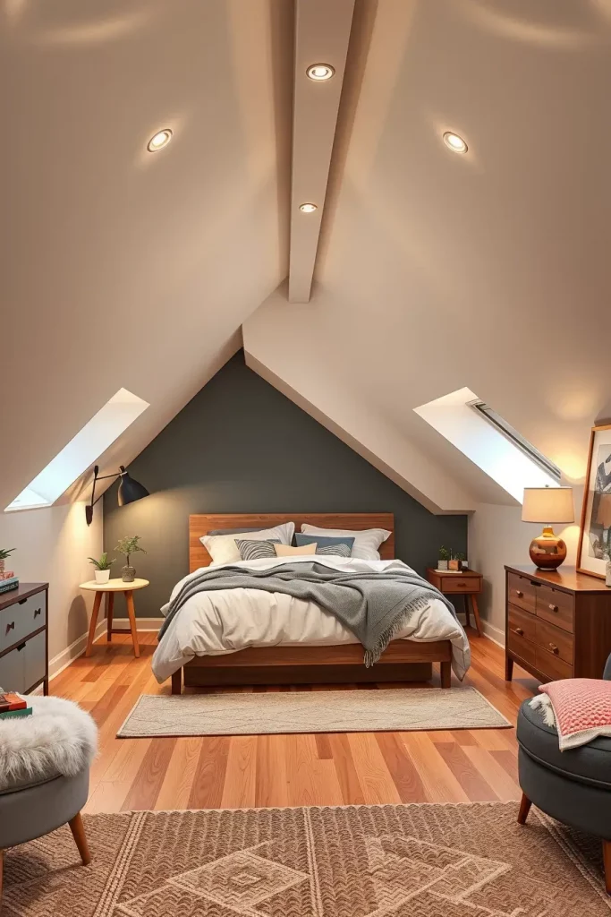 My experience has shown that the inclusion of such features as dimmable smart lighting or a fake fireplace can make the mood a lot better. Most designers in the Architectural Digest have suggested the use of more layers of lights in the attic rooms to achieve a feeling of opulence and refuge. I completely concur because correct lighting has the ability to change the way the space is experienced at night.