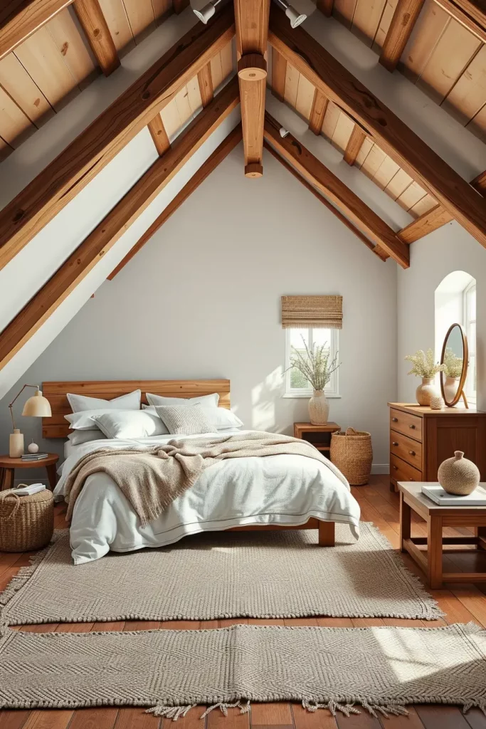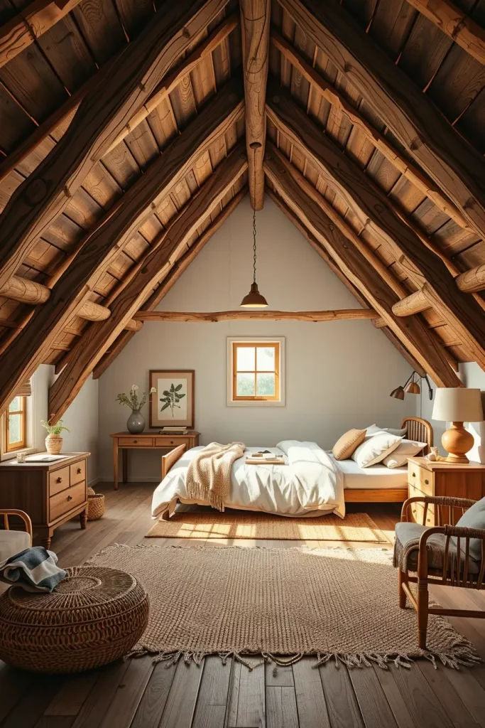 Attic Bedroom Ideas With Wooden Beams And Natural Materials