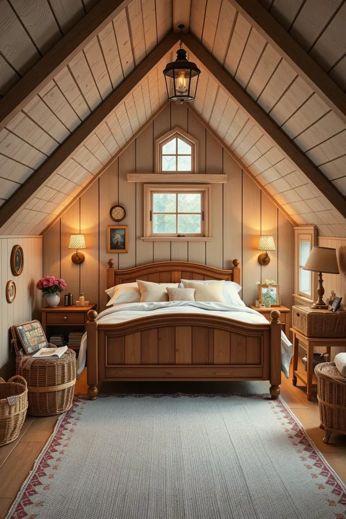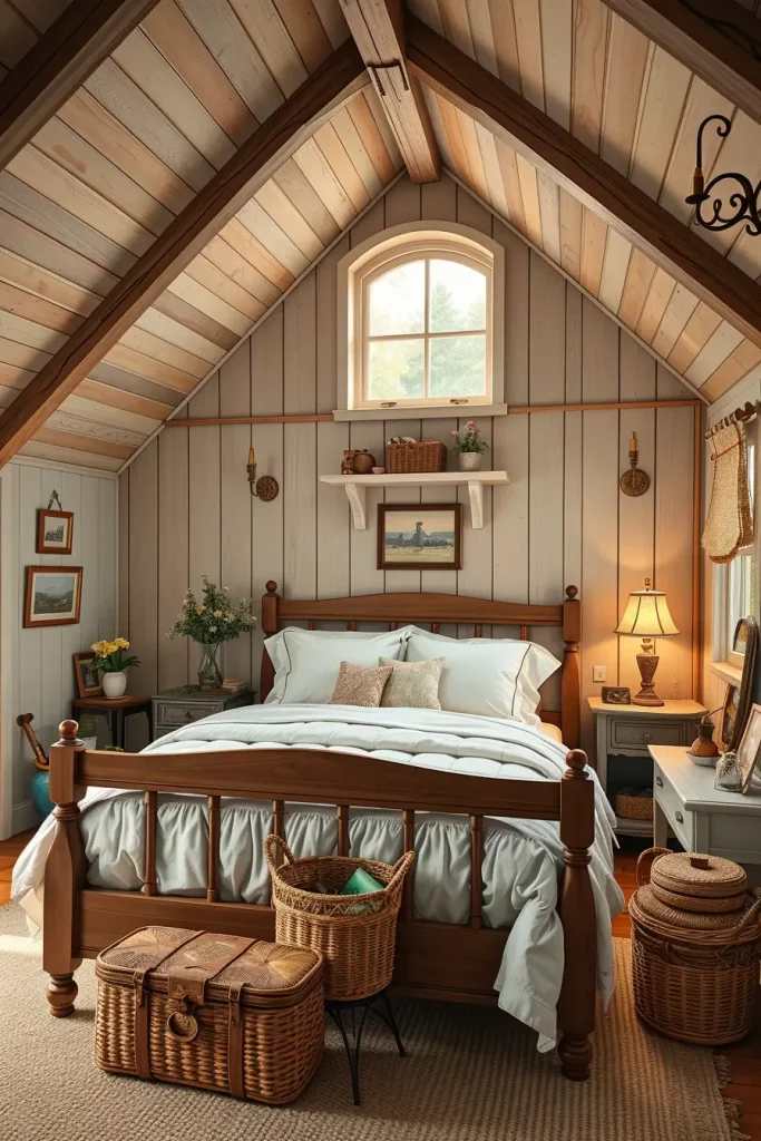 The cottage-like attic bedroom is the ideal choice of a homeowner, who does not want to lose either the coziness or the comfort or the delicately rustic charm but still enjoys the modern convenience. This style is quite frequently suggested in cases when the client has a soft texture, details overlay, and a feeling of a retreat that will not go out of fashion but will be very attractive in 2026. Attic architecture is well suited to a cottage style with sloped ceilings and exposed beams, which create intimate storybook feel of the room.