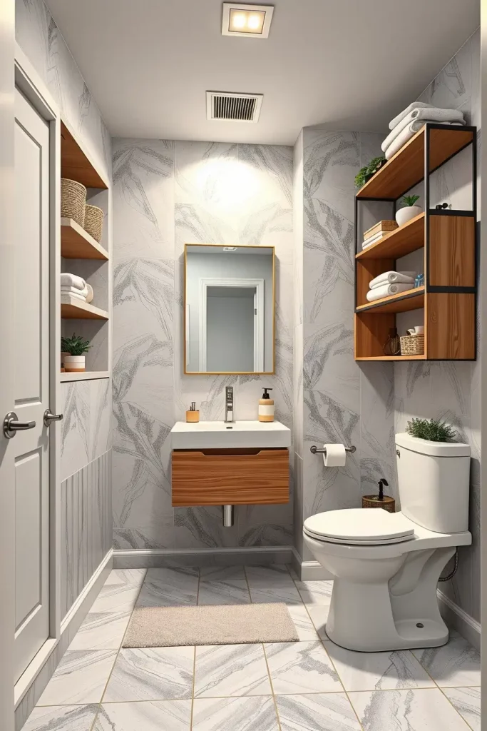 The types of recessed shelves, floating vanities, deep drawers, over-toilet shelves, and narrow built-in towers are what I normally use in small bathrooms. The mirrored cabinets are useful in offering secondary storage and also reflecting light to brighten the room. I have tendencies to keep such important things hidden yet visible using baskets, organizers, and slim pull-out compartments. Every product is selected to be practical and stylish, particularly where the storage space is minimal.