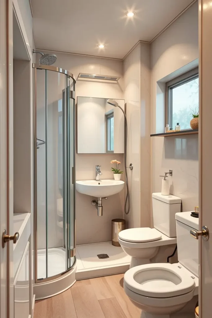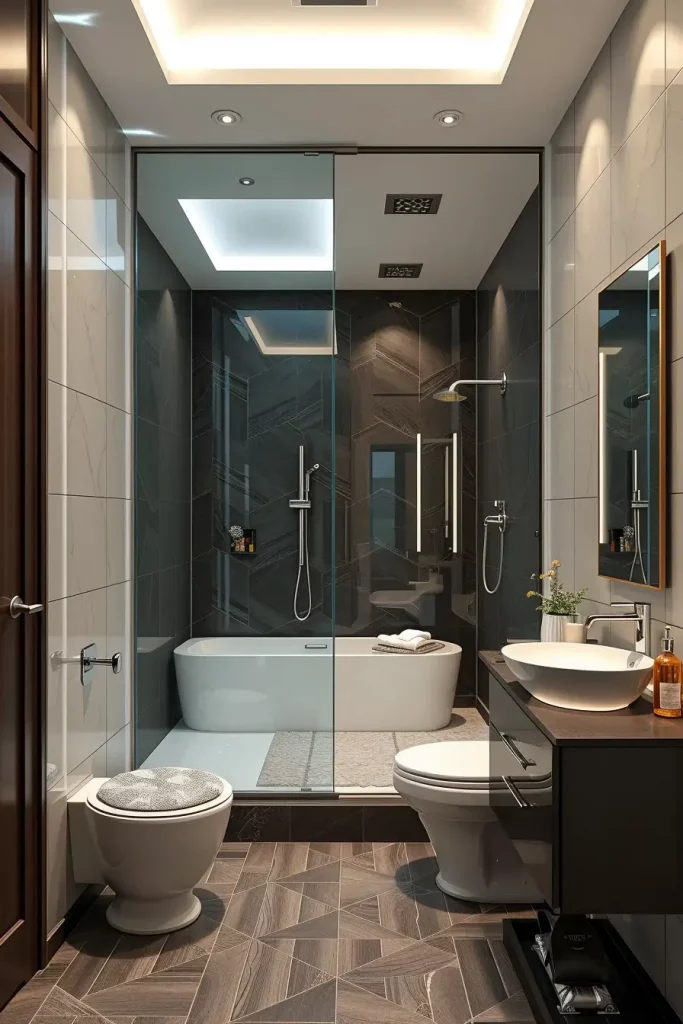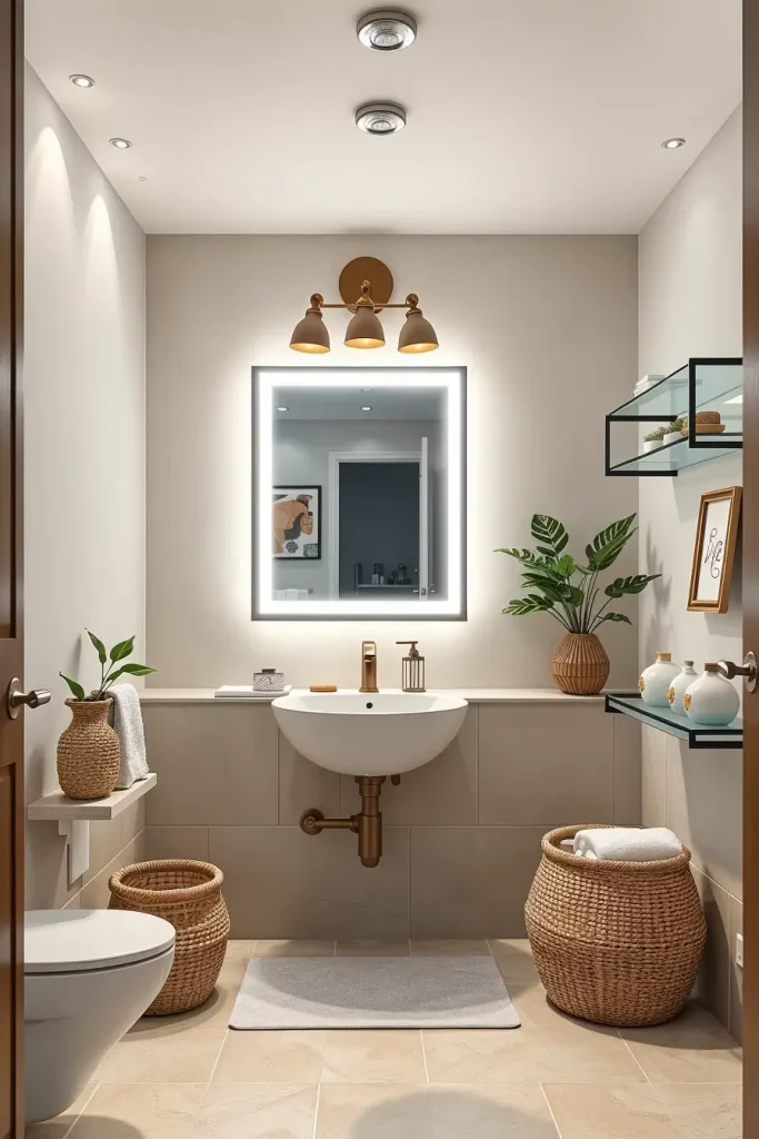 In the case of fixtures, I use corner sink, wall-mounted faucets, and walk-in showers with clear glass walls to create the effect of an open space. In order to get the space to appear bigger, a small floating vanity is selected to leave the floor visible. Also I suggest very bright soft lighting, as this will assist in eliminating the inherent darkness of basement spaces. Each piece needs to be functional such as mirrors that are slim and even furniture that is multi-purpose and can hold small things in an organized manner.