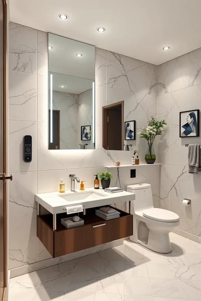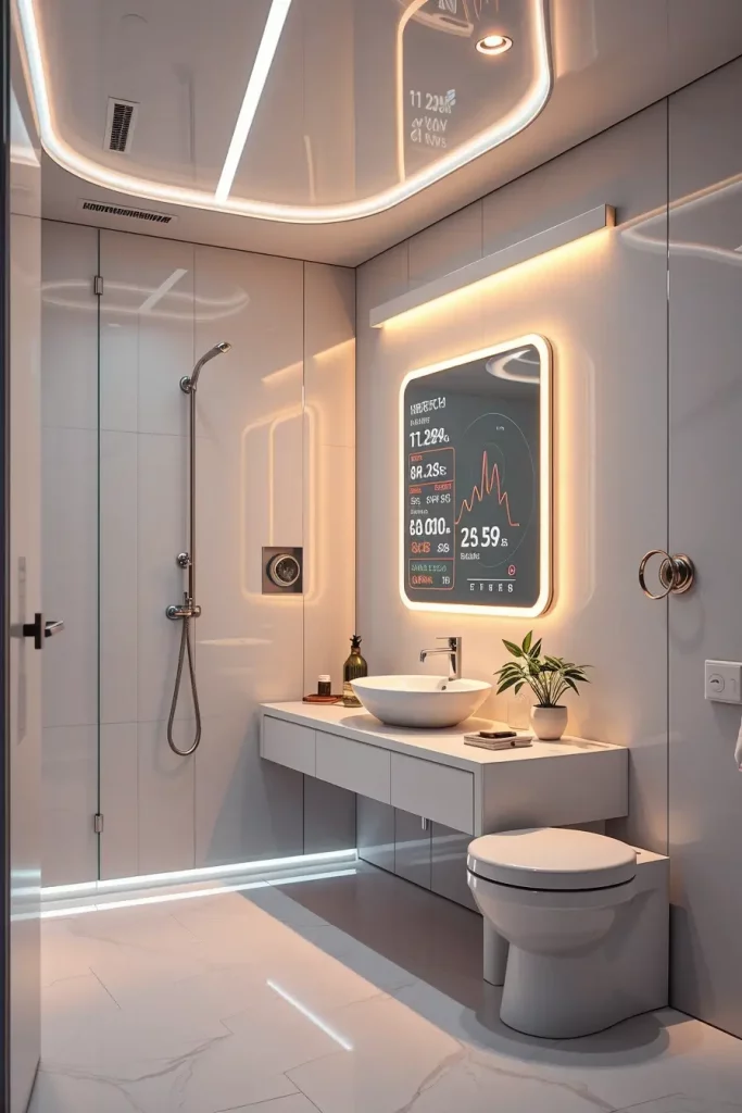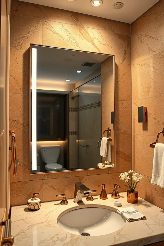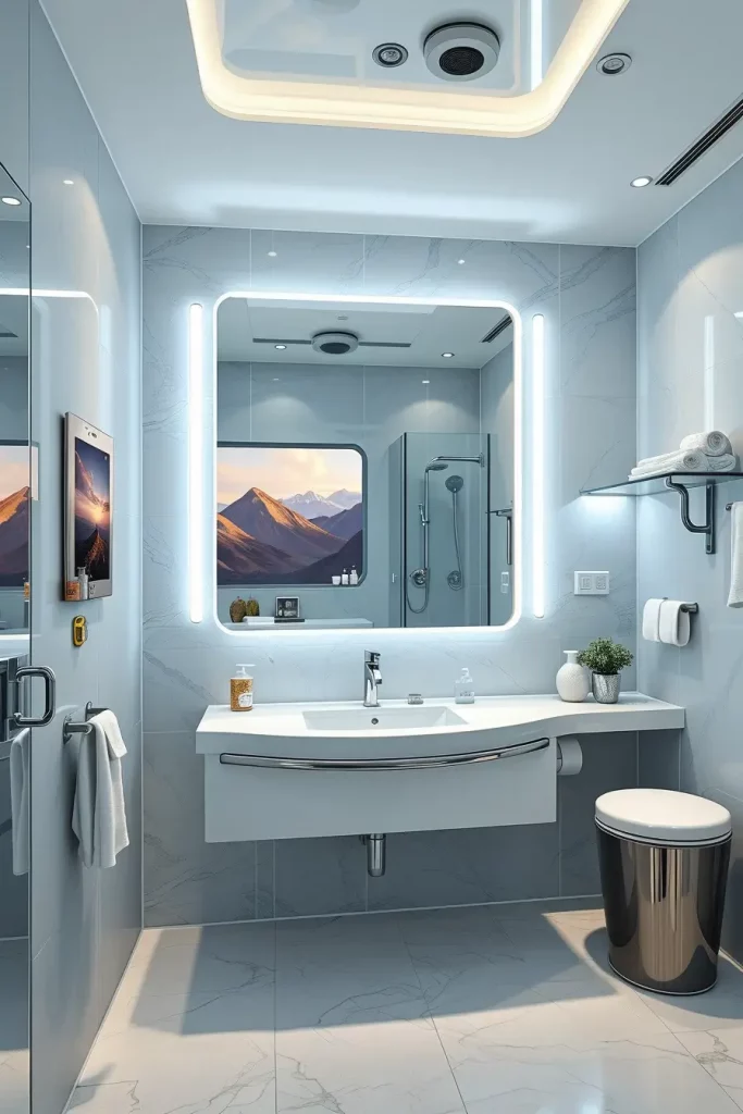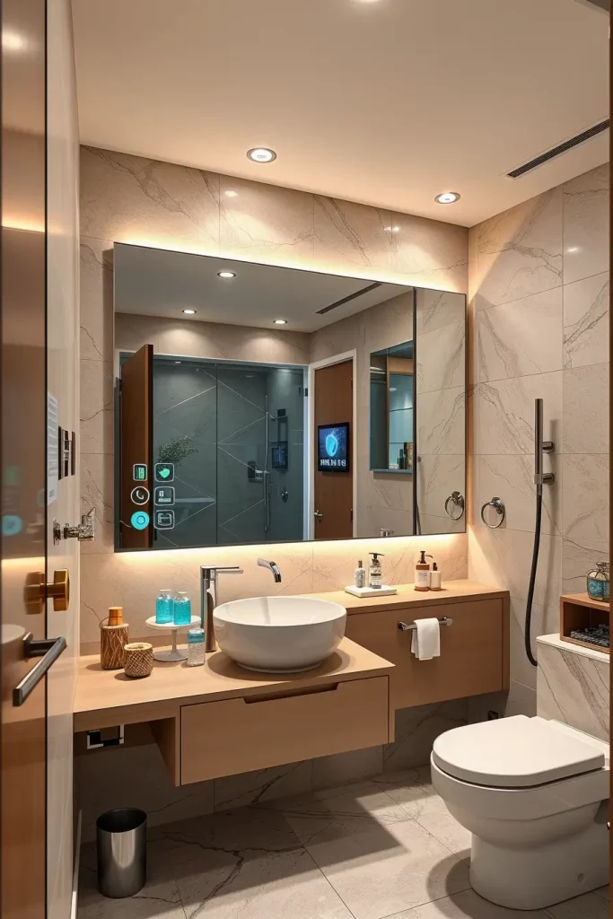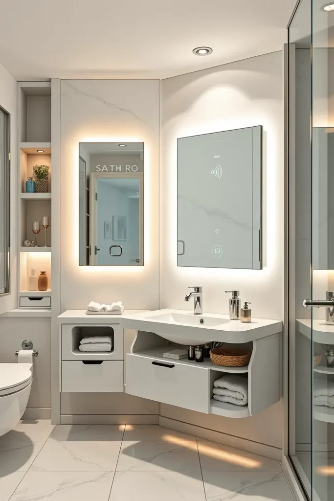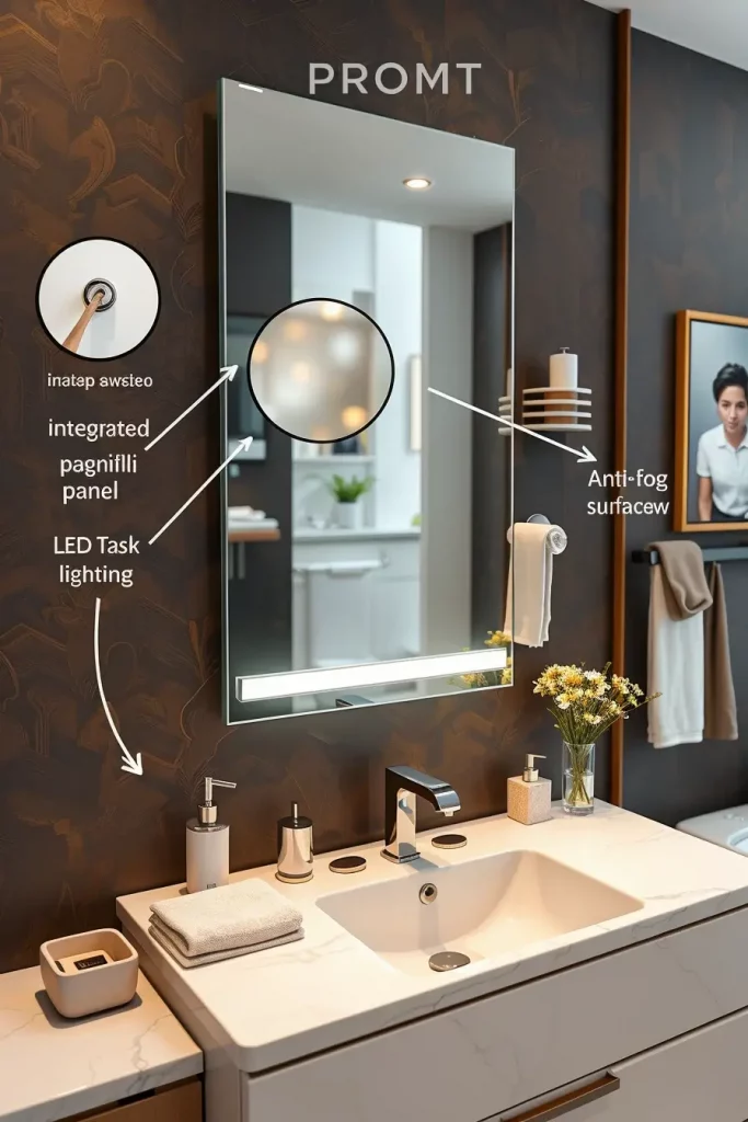 Tech-enhanced vanity mirrors in my professional experience are associated with the luxury and convenience. The integrated speakers in the bathroom as shown by many US interior design magazines indicate that experience is seamless without any external devices marring the space. I have witnessed homeowners taking advantage of this feature as a way of relaxing and also to be productive.