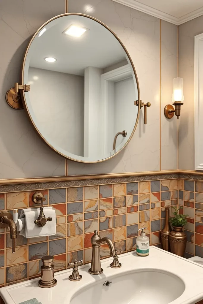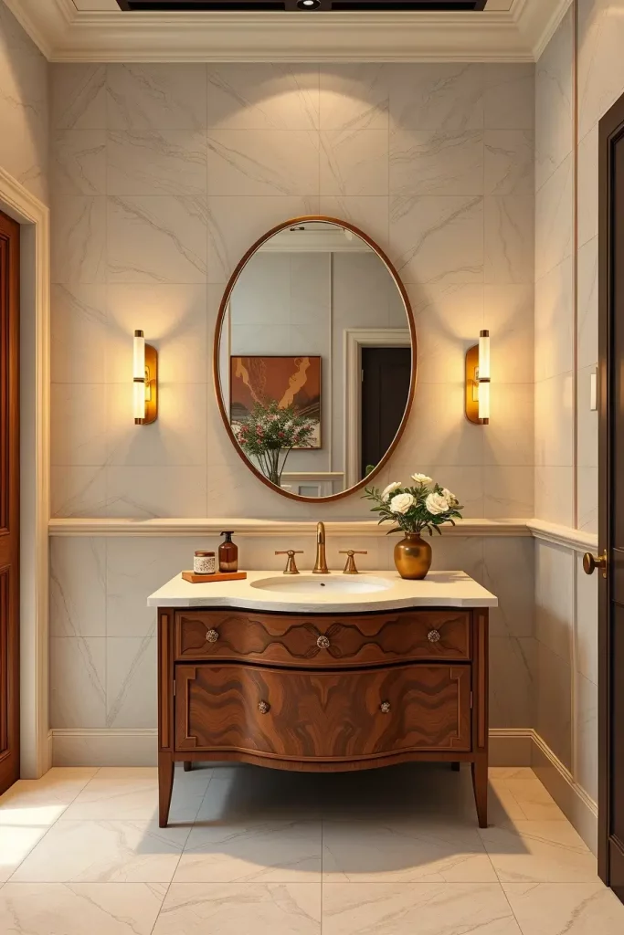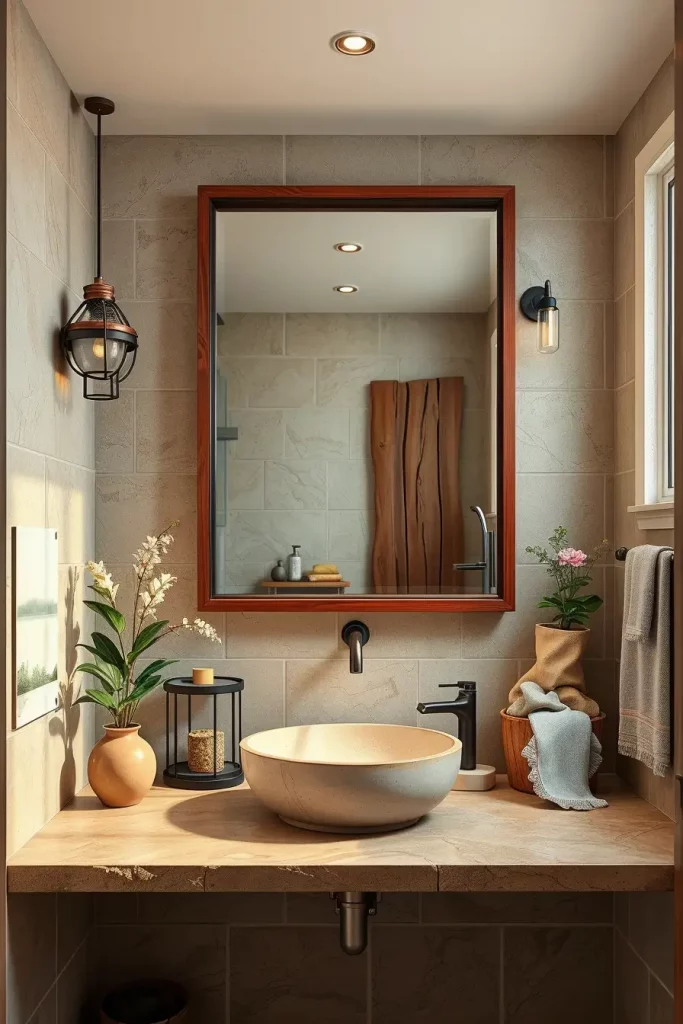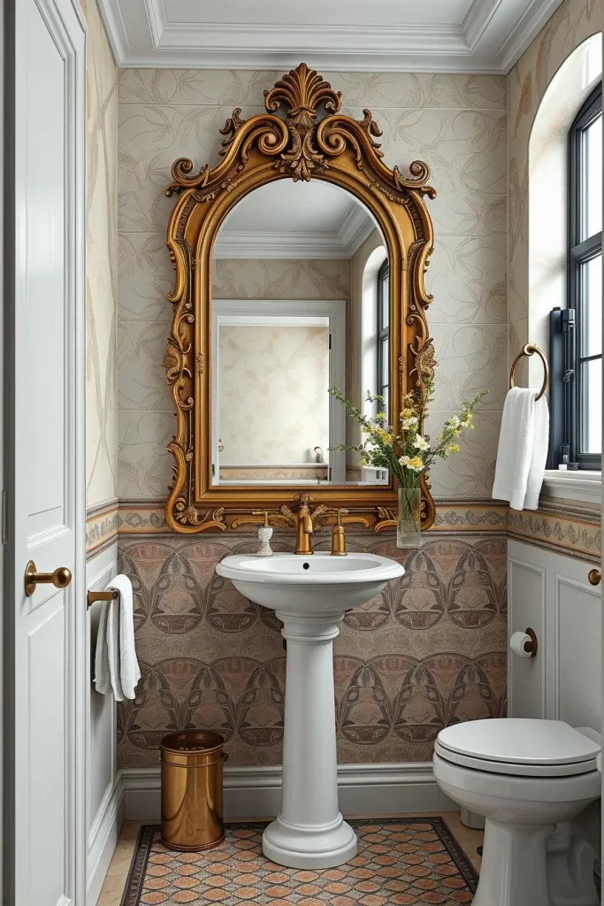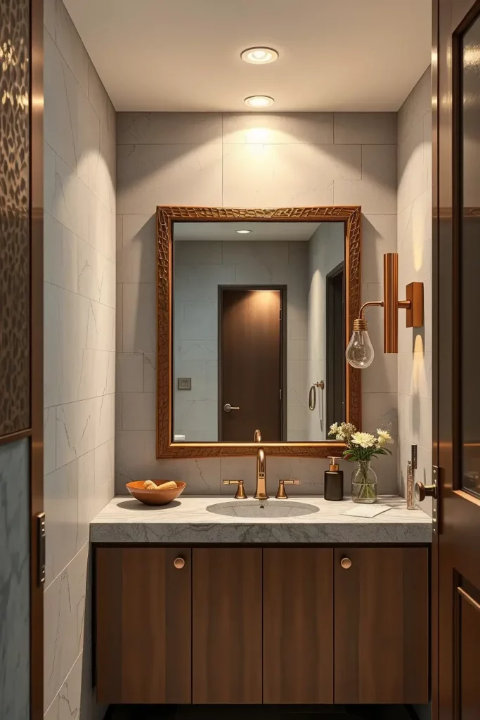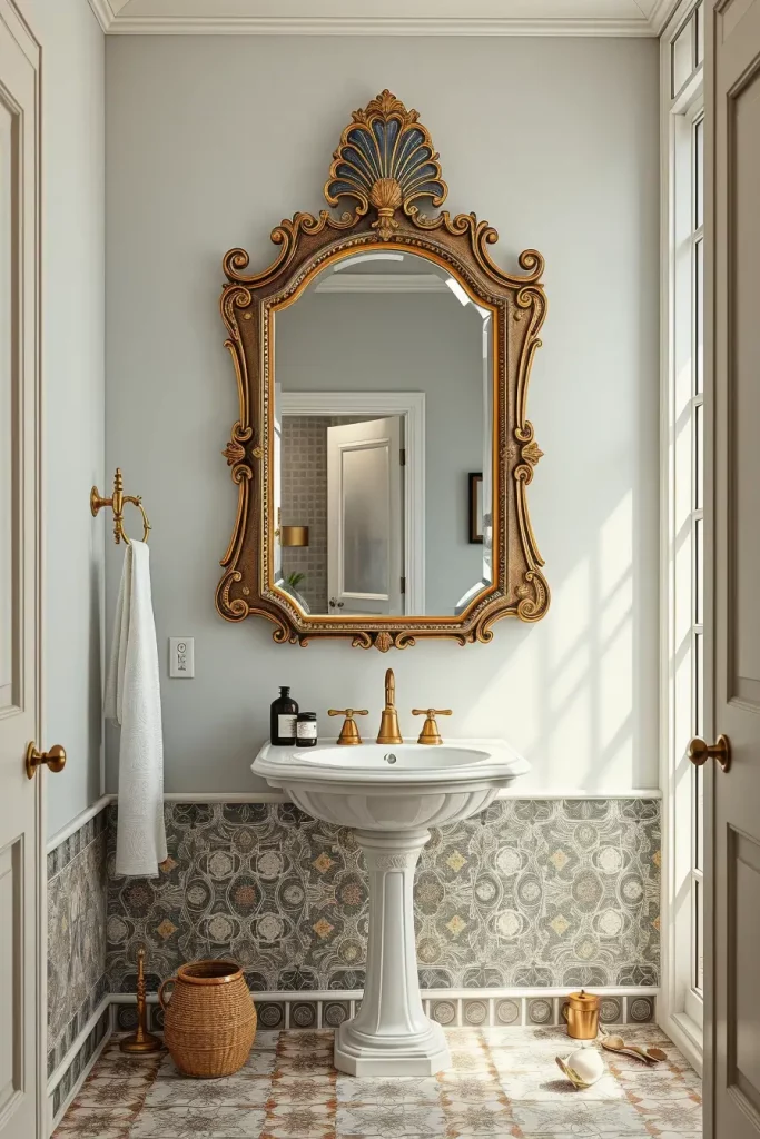 In choosing artistic frames I prefer to match it with a matching finish that would be in stone countertops, distinctive ceramic tiles, or patterned wall sections. The mirrors are quite excellent in front of pedestal sinks or console vanities when the frame takes the focus. One should also ensure that the frame material selected is able to withstand humidity and at the same time be aesthetically appealing.