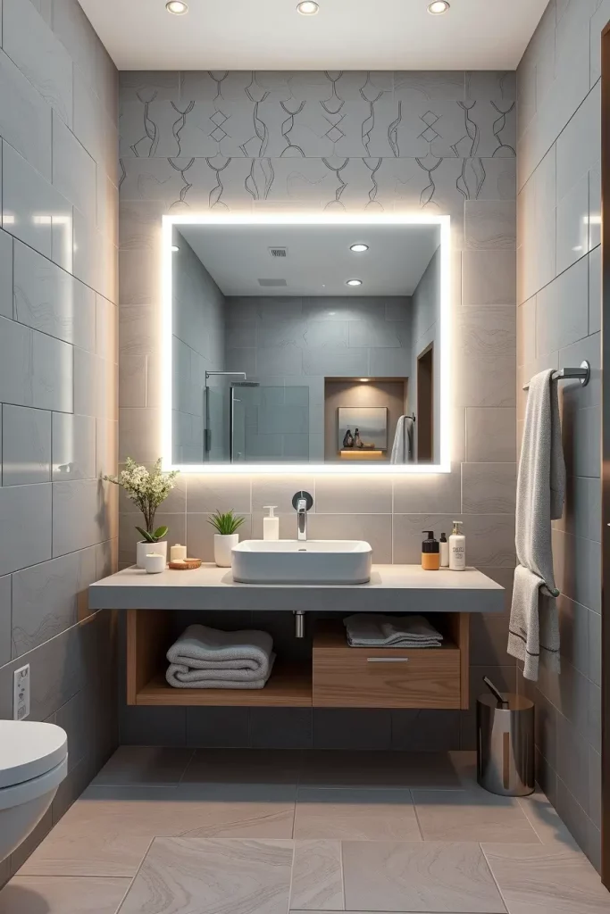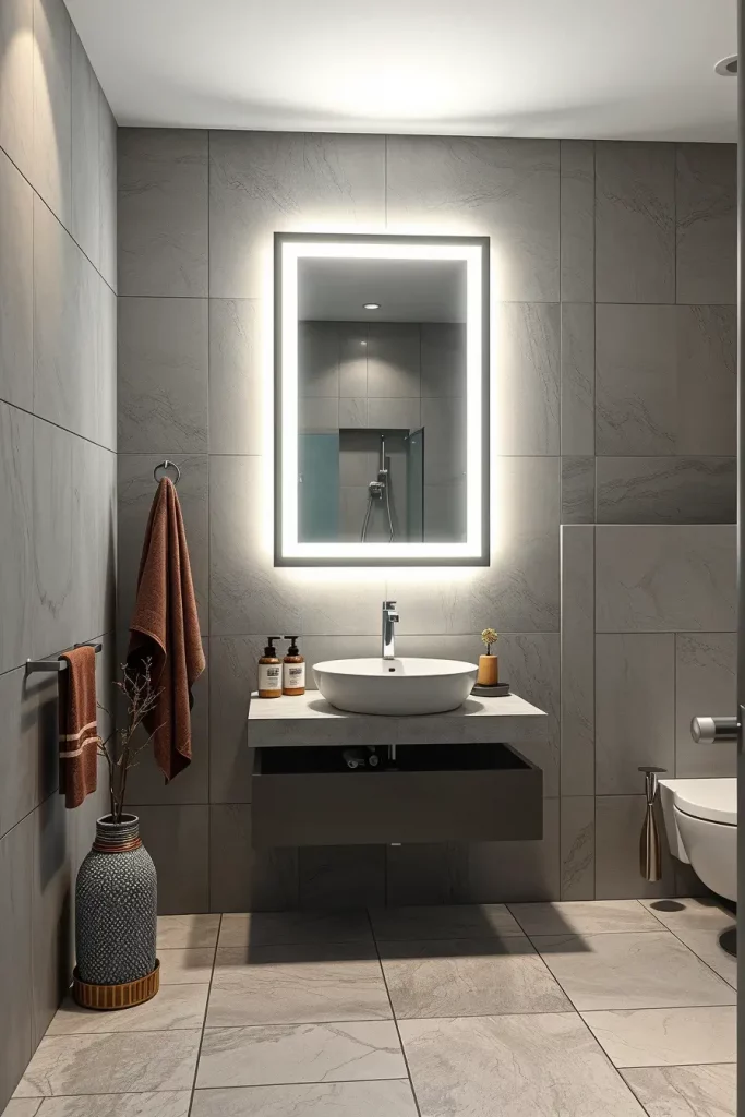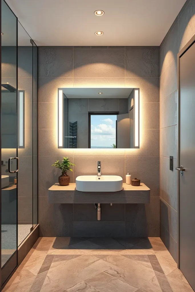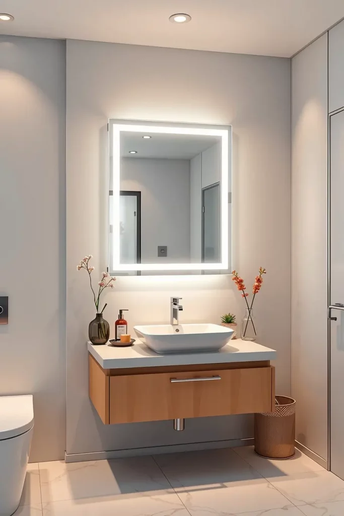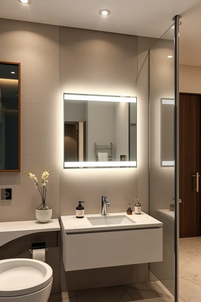 In designing with LED mirrors, I usually choose fixtures that are sleek in matte black or brushed nickel, smooth wall tiles and floating vanities so that the lighting is reflected fabulously on the surfaces. The uniformity of lighting enhances visibility, and the routine of day-to-day skincare tasks will be made easier and enjoyable. Mirrors made of LED are particularly harmonious with modern materials like porcelain tiles of large format and concrete-appeal finishes.
