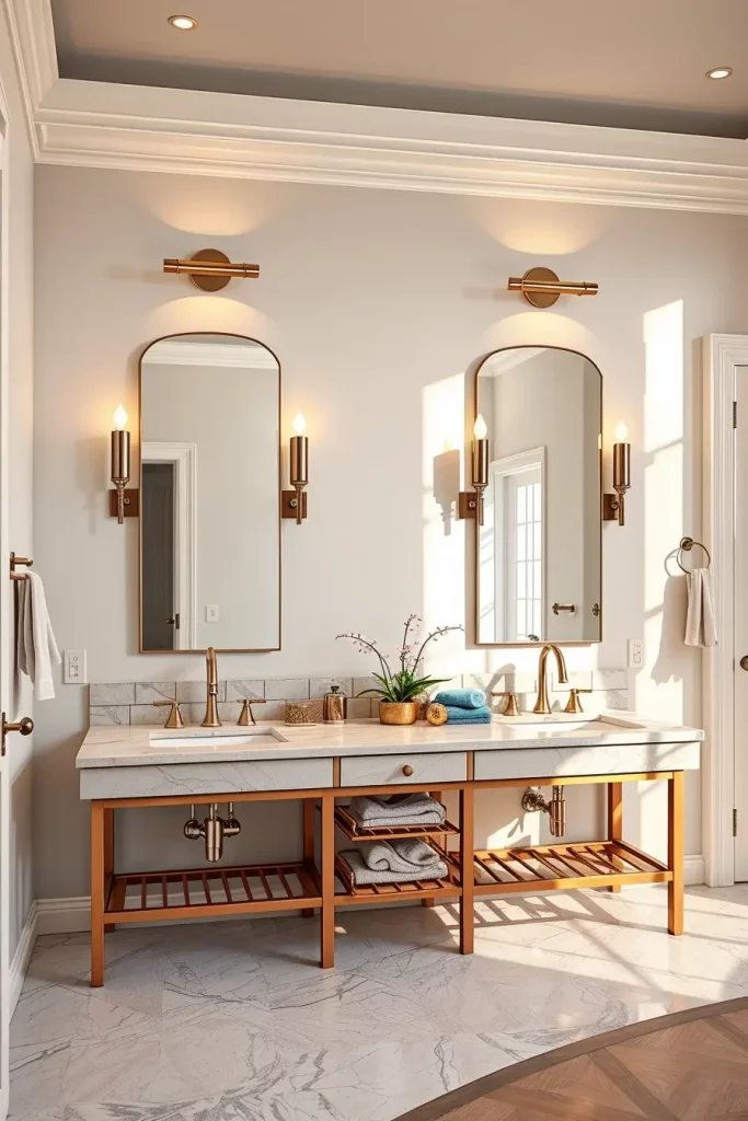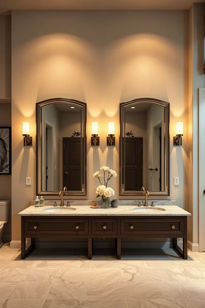 The dual-mirror arrangements keep on gaining momentum since they promote personal comfort and effective morning schedules. In designing a shared bathroom, I am inclined to install two separate mirrors so that there is a feeling of personal space in the bathroom, which greatly decrease congestion around a single vanity. The layout also enables me to maintain a balance between symmetry and functionality to provide the room with a smooth and orderly appearance.
