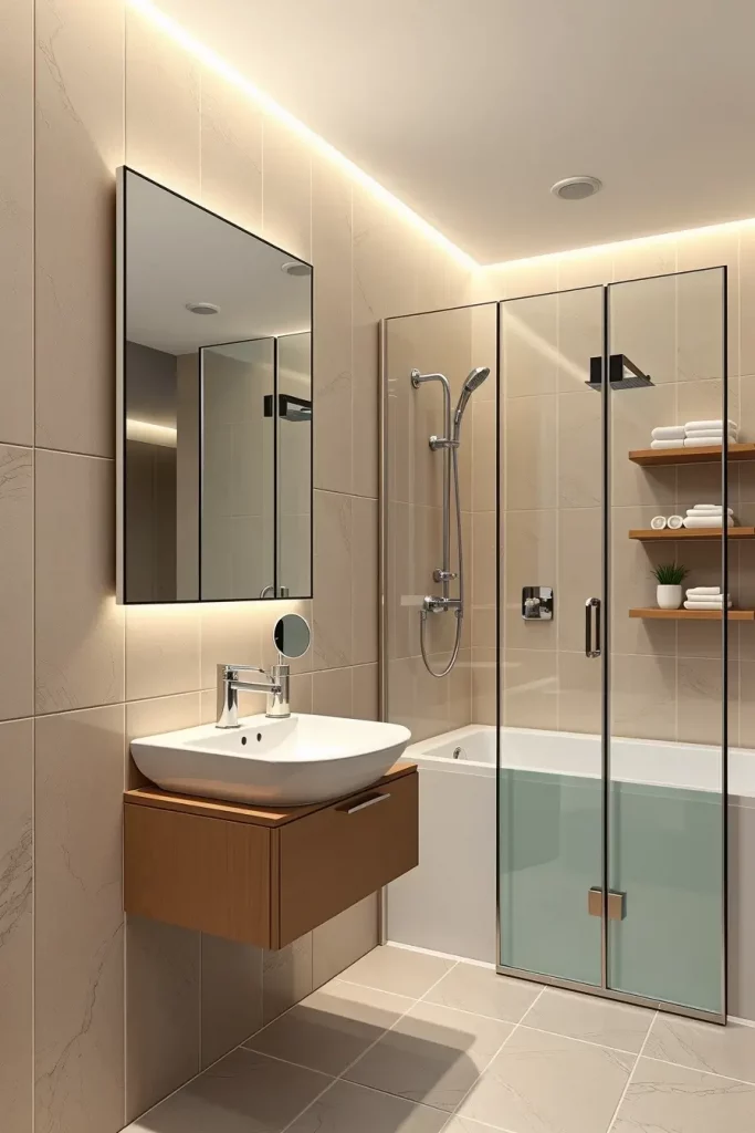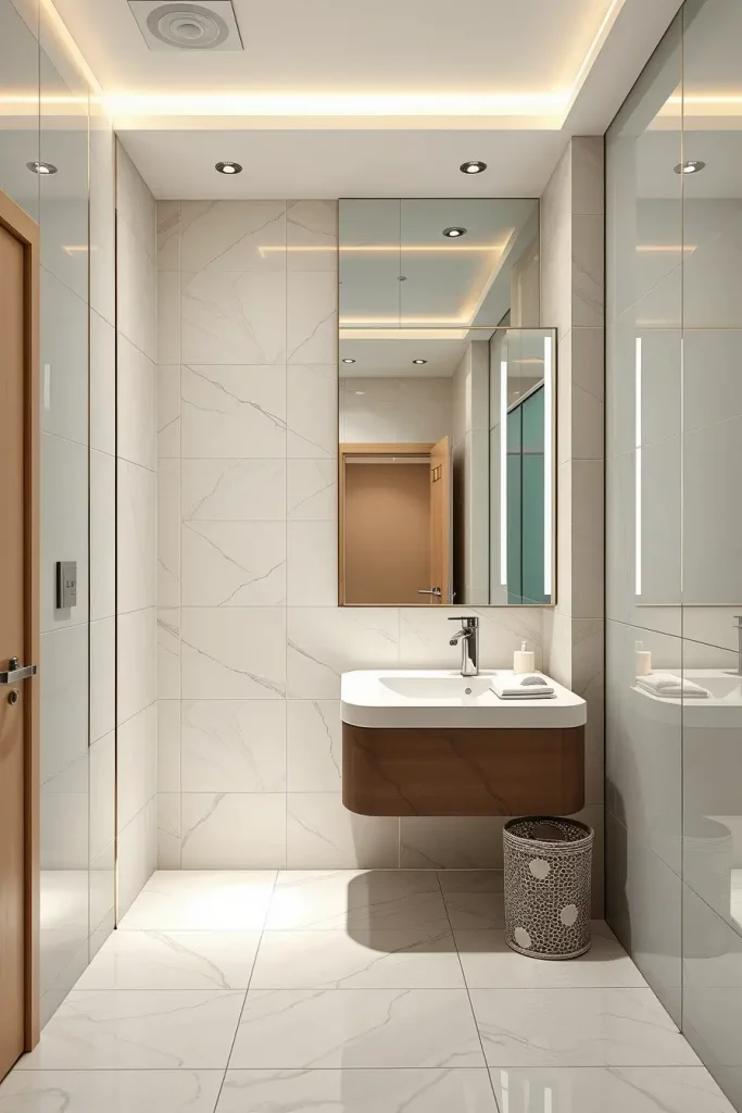 I think wall-to-wall mirrors will be one of the best options to modernize a small bathroom without the need to renovate the structure. Large reflective surfaces are an effective design technique that is emphasized by many design experts in the industry magazines as a leading approach in small areas. To this section, I would add tips on how to keep the mirror clean in a high-humidity climate.