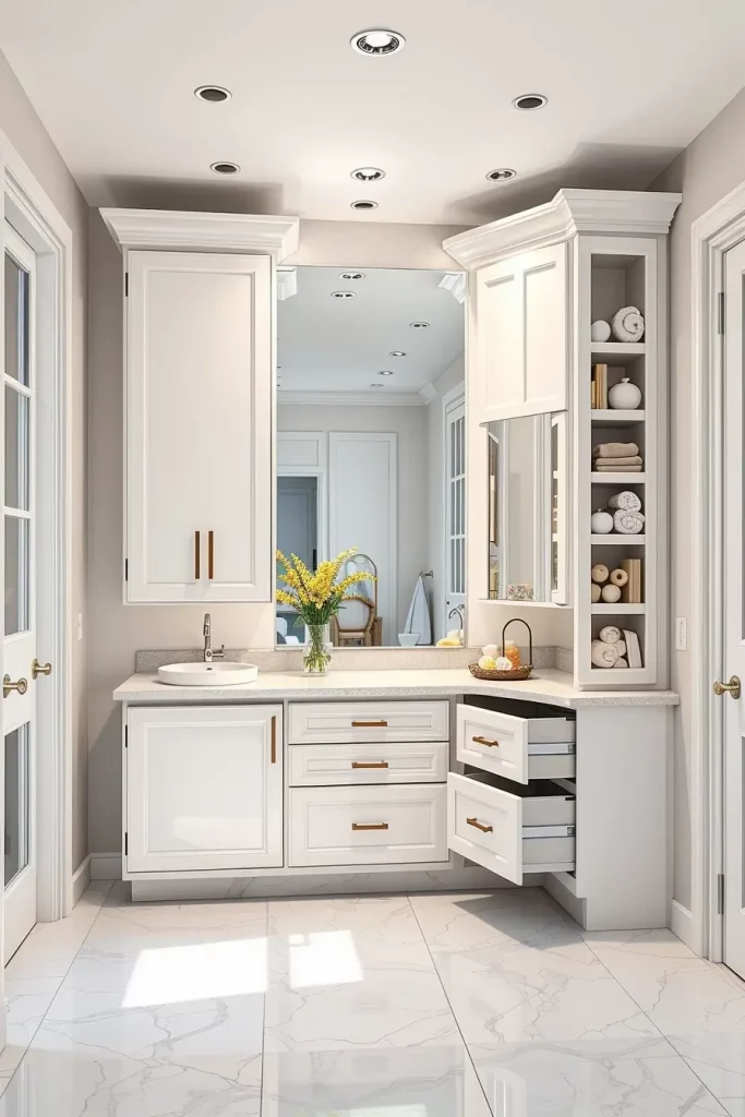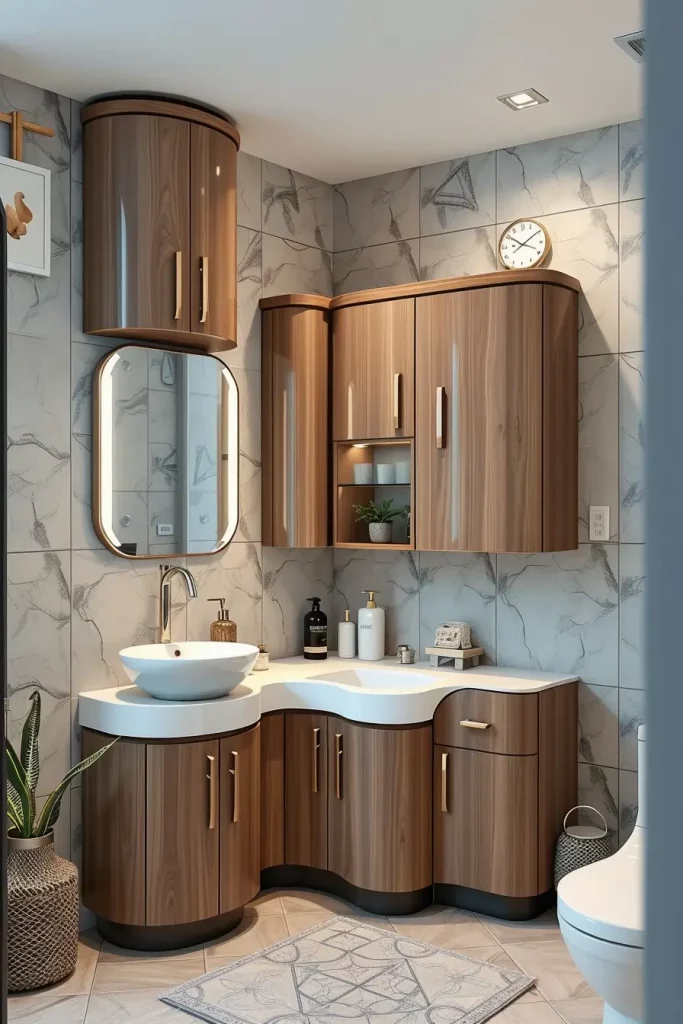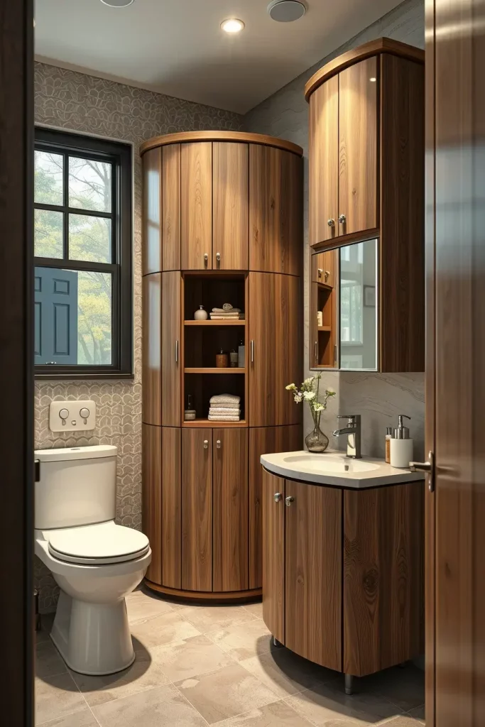 The corner storage cabinets are a great solution to bathrooms that do not have free wall space. In case I deal with smaller or irregular shaped bathrooms, I am likely to use corner cabinets to make the most out of the unused space without interfering with the movement. These cabinets are more elegant and fashionable in 2026, with curves on the fronts, smooth surfaces and smartly designed interiors maximizing every inch.
