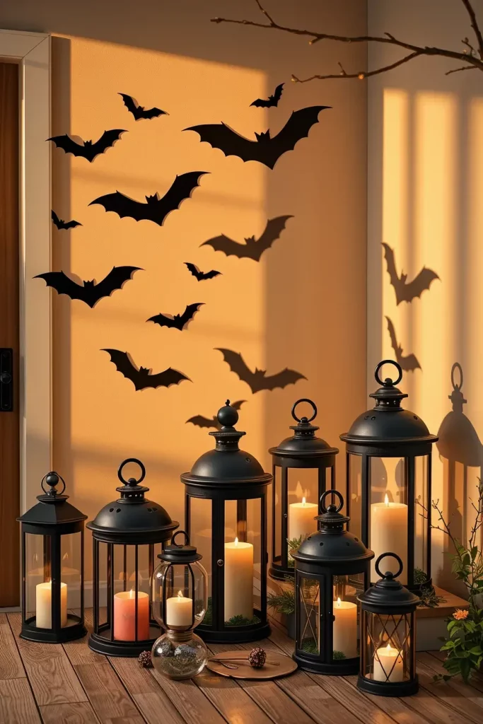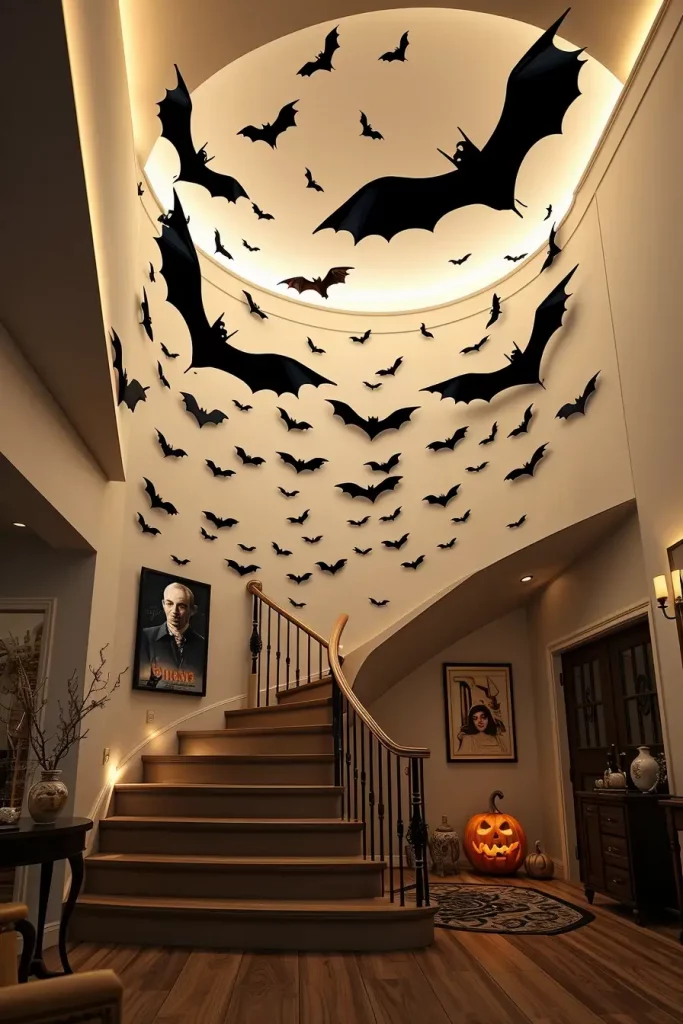 As I have experienced, this is one of the cheapest methods of decorating vertical space with Halloween spirit. As a matter of fact, HGTV has recently posted that vertical progression in wall decor is one of the most suggested tricks to expand the eye. I would prefer to have the bats combined with neutral-colored wall sconces or LED uplights to get a soft glow.