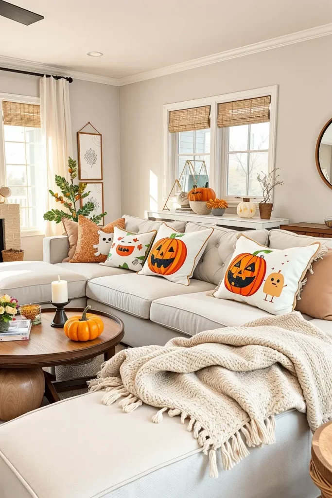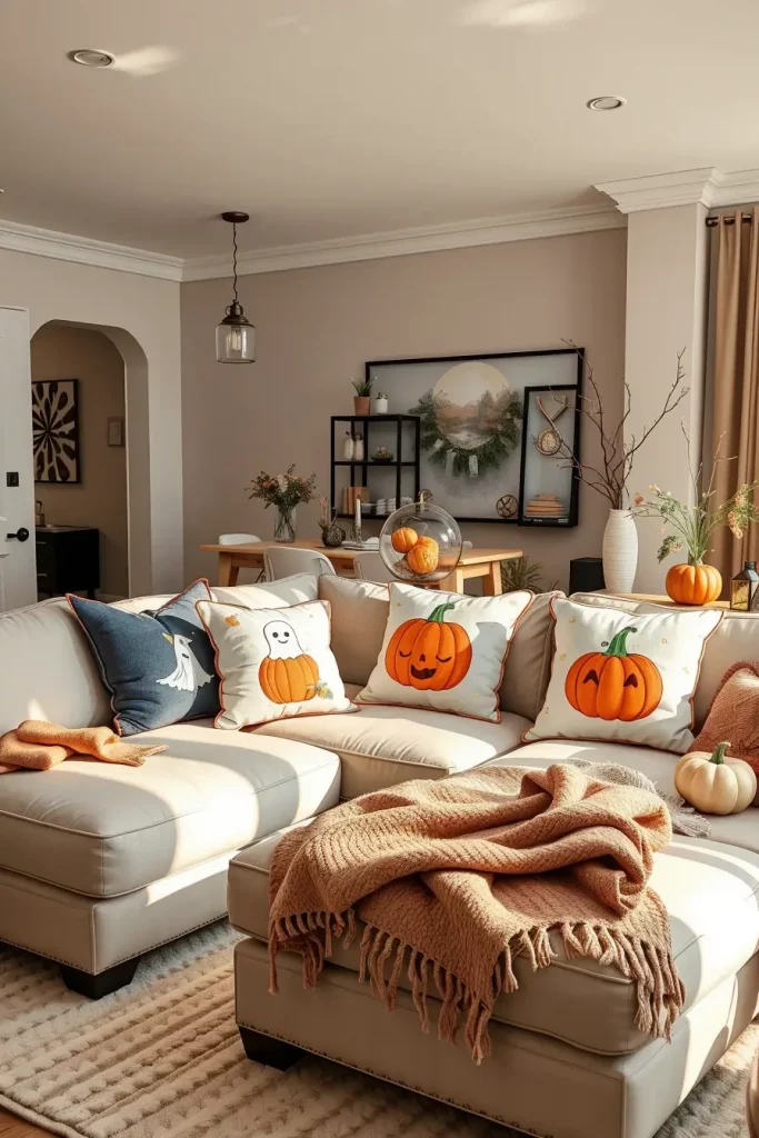 I like to use these decorative pillows with upholstery that has neutral tones, so the adorable character designs can be the star. The most effective pairings are soft grays, beige or whites as a background to pastels or classic Halloween colors. The pillows ought to be a mix of fancy and style, embroidered ghosts with gold edging or hand sewn jack-o-lanterns with small bows give it a boutique look that will fit in with the finest interiors.