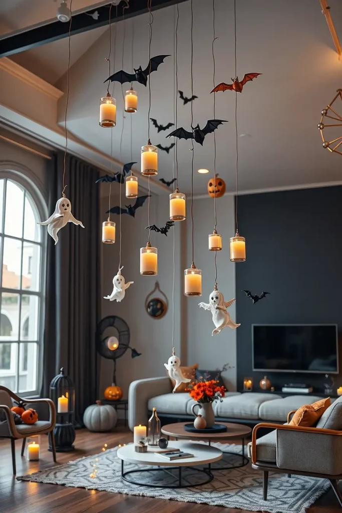 Halloween decorations that float add magic to any room and particularly when you need to create a feeling of movement or magic. I always suggest starting with floating candles (hung with clear string), ghostly silhouettes drifting near the ceiling, or flying bats emerging from behind furniture. These make it whimsical and cinematic, which is ideal both to adults and children.