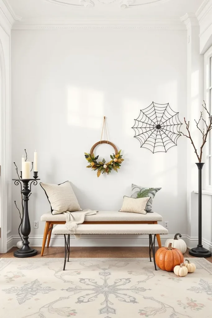 To finish this part, a minimalist sideboard with ghost figurines or a patterned ottoman with Halloween prints would be the ultimate finishing touches.