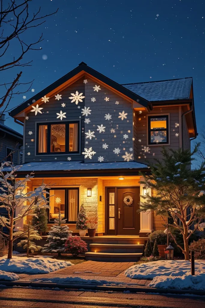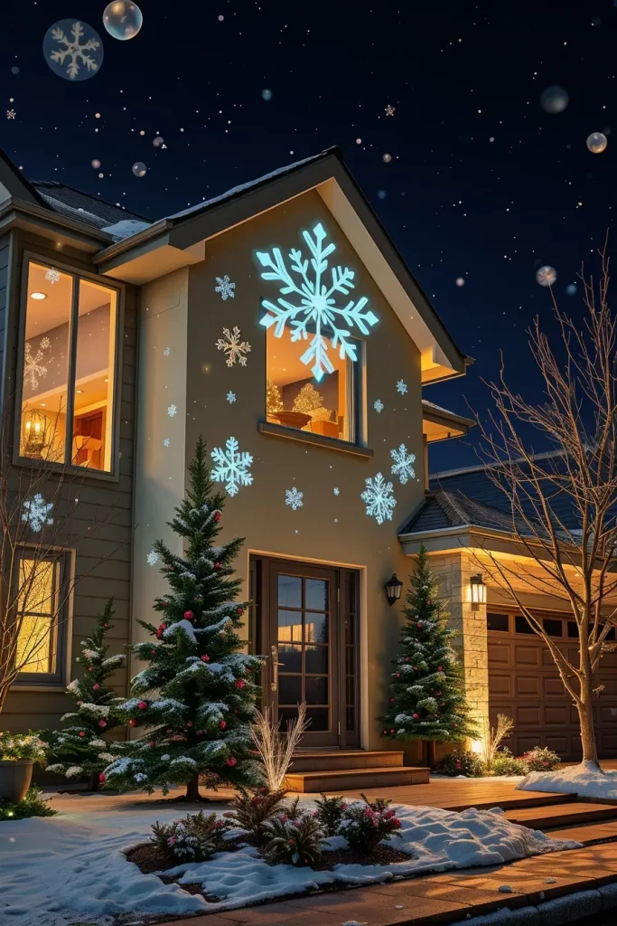 I prefer to use snowflake or star on the projector on the front of my house or trees. The moving lights produce a dynamic dreamy feeling, without the trouble of being in charge of the hundreds of bulbs. Inside, projectors could be utilized to project soft patterns onto ceilings or walls, which would be warming evening parties.