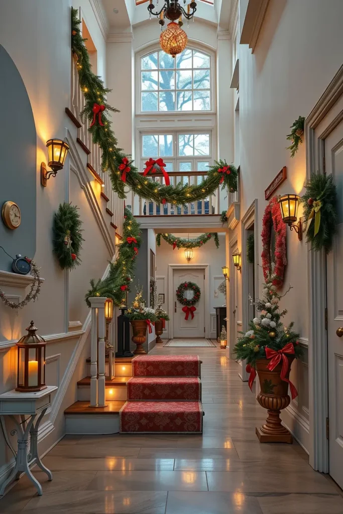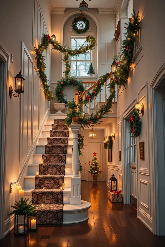 A staircase, which is well lit, turns a pedestrian element into a holiday item. I have banister lights and micro fairy strands woven through garlands to give me that soft Christmas sparkle. Flexible LED strips are the ideal in 2025, they are shaped to fit perfectly along the rails and the steps and give functionality and appeal on the same.