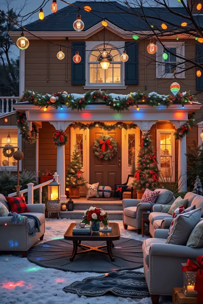 I would suggest the use of pre-lit wreaths, battery-powered fairy lights, and some smart LED strips that you can change the color on with a smartphone. The arrangement can be finished with some little additions such as metallic ribbons, hanging stars or even frosted pinecones. I tend to put two identical planters with lit-up branches next to the door to create a balance that I consider the symmetry – such a minor detail can turn any plain porch into a sophisticated Christmas.