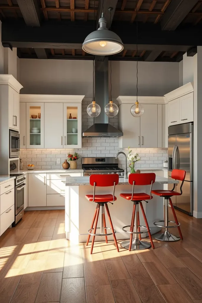 Bar stools are a great solution to adding bright red accents to a kitchen without having to devote large surfaces to it. They are ideal in kitchen islands or counters where they can be functional and at the same time a striking decoration. I have observed how red bar stools tend to be the centre of attention, and attract people to social areas.