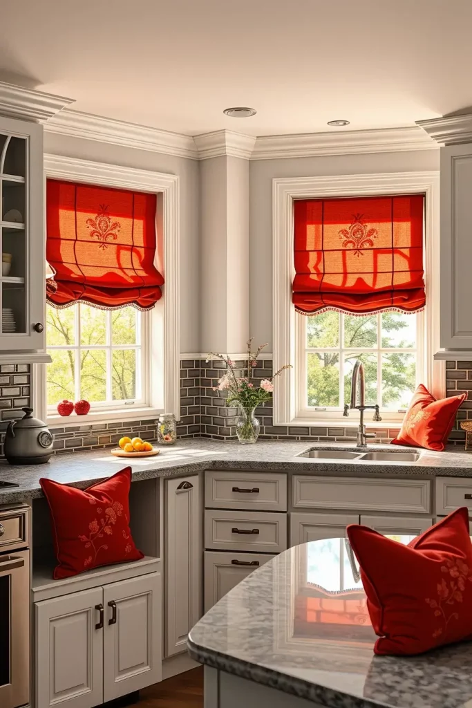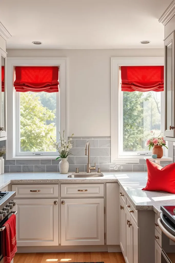 Using Red Window Treatments For Kitchen Flair
