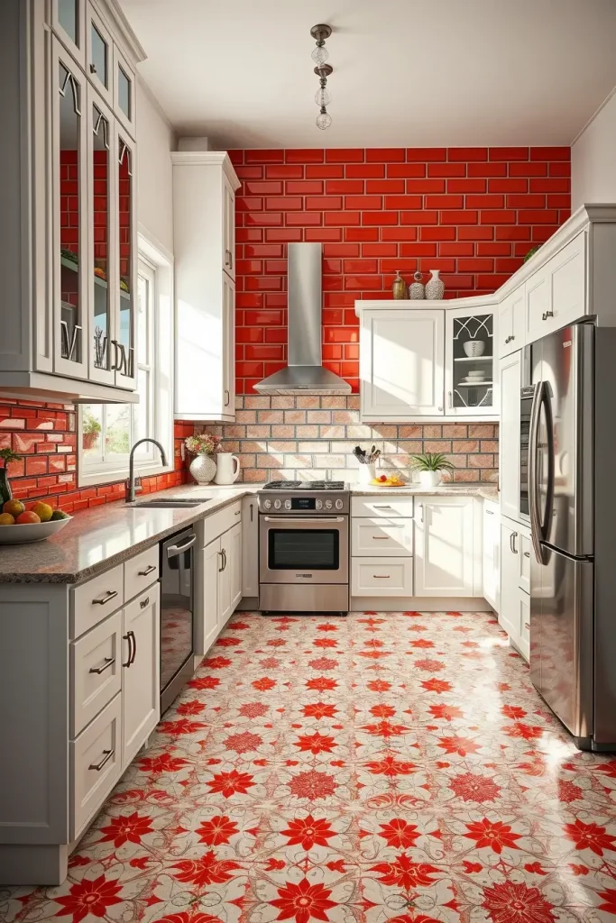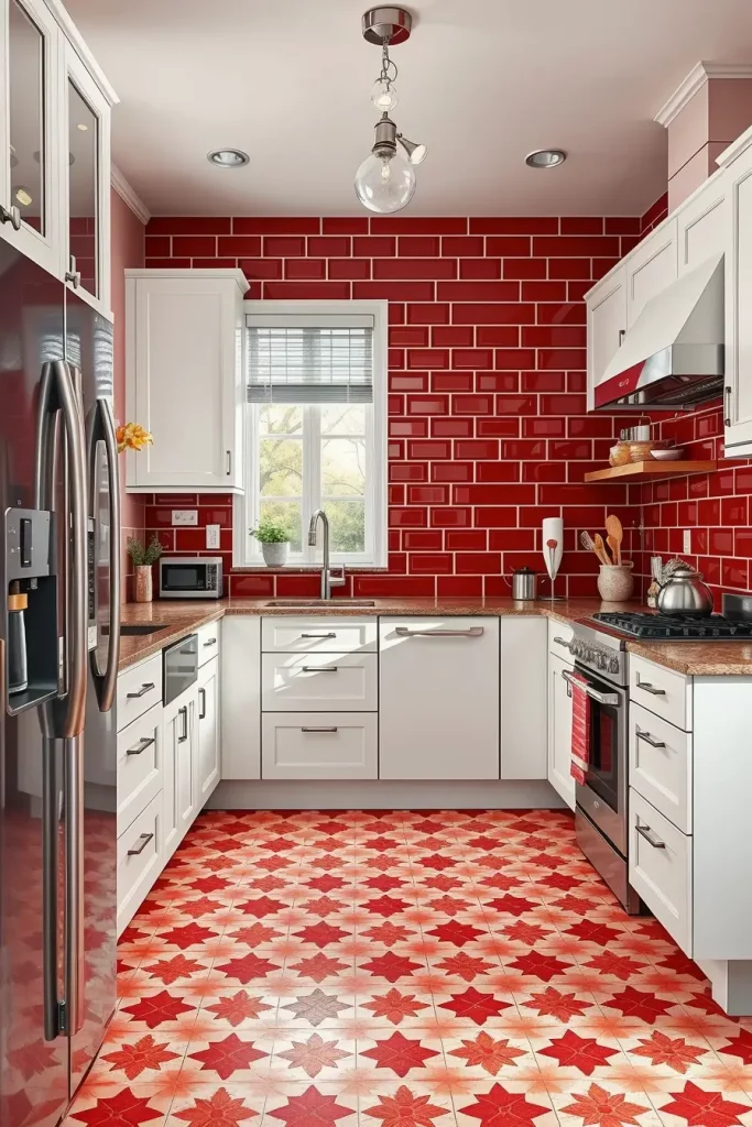 Practically, I discovered that red subway tiles can be used behind stoves or sinks and they make a striking accent. Patterned tiles with red detailing can be used on floors to interrupt monotony and offer durability. The color is even more prominent when paired with white grout, which makes it look clean and modern.