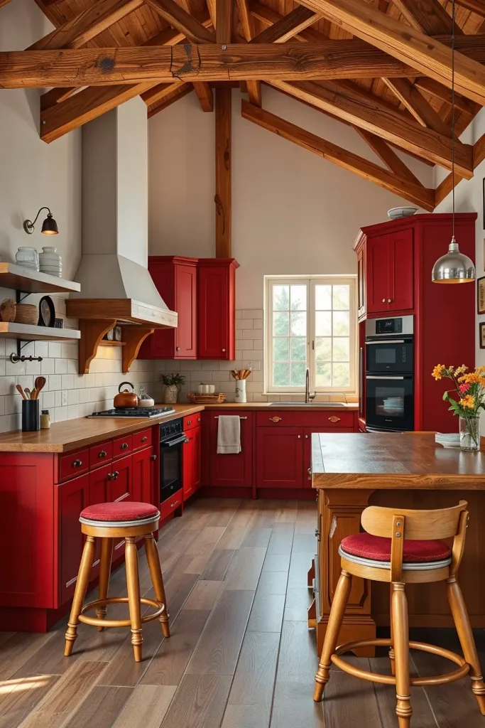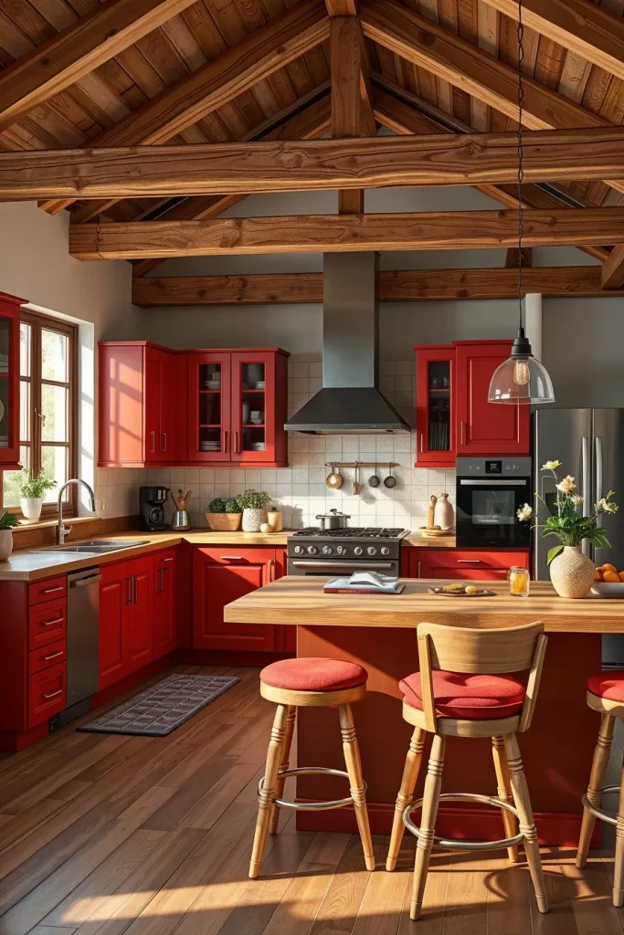 Red And Wood Accents For A Natural Kitchen Feel