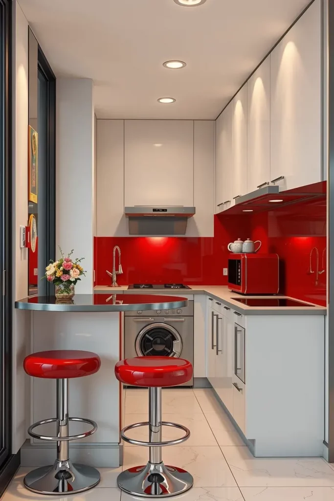 Compact Kitchens Enhanced With Red Accents