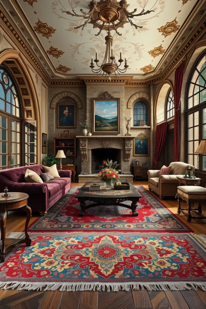 Any Castlecore living room is incomplete without elaborate carpets. I am in love with them as they are so helpful in the definition of spaces, acoustical softening, and the introduction of color and texture layers. They are particularly valuable in rooms that have stone or wooden floors as they add warmth to the feet.