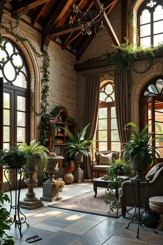 My personal projects have shown how greenery balances the darker colors of Castlecore interiors. Historians at Better Homes and Gardens have stressed the significance of natural elements in the grounding of historic interiors, and I have found this information quite helpful.