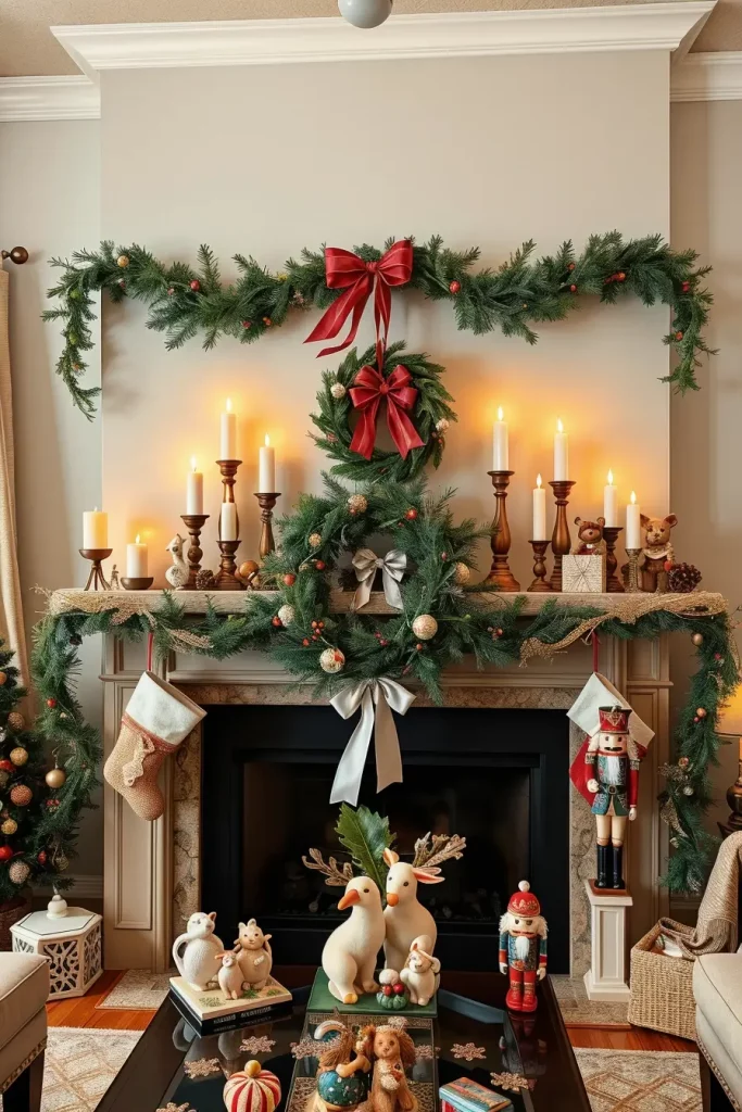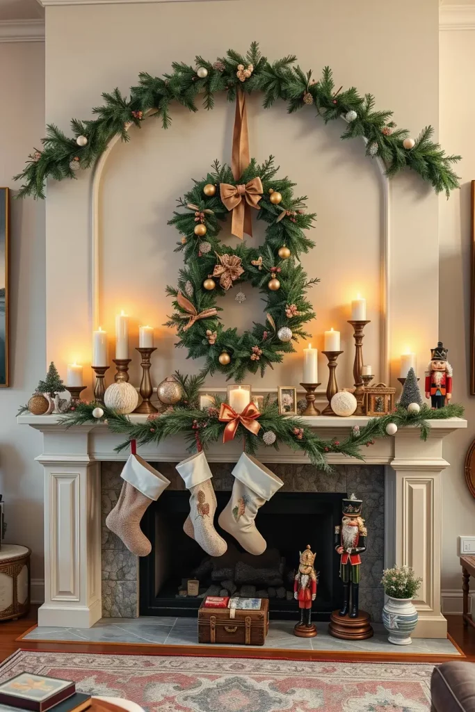 I tend to anchor the design using a huge decoration item at the center such as wreath, mirror or a festive artwork. Then put strings of garlands on the mantel, and allow them to run. Neutral stockings with embroideries to suit the season are also very warm. The appearance is completed with Christmas home decoration items such as ceramic figurines or nutcrackers.