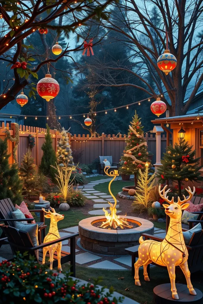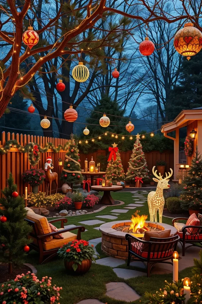 I would recommend the use of string lights along the fences, ornaments oversized on trees and glowing pathway stakes. Fires in the garden with small seats around them may transform winter evenings into magic. Light-up figures such as deer or sleighs add a light-hearted but classy touch for a more radical declaration.