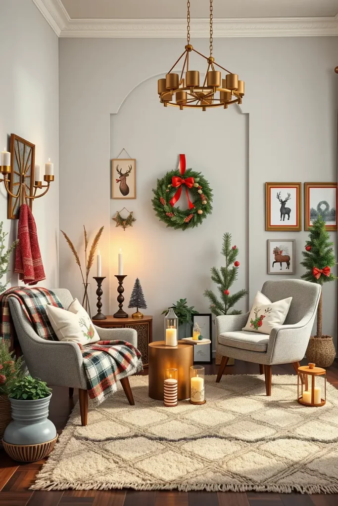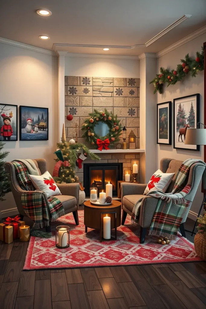 As far as furniture is concerned, the accent chairs with cushions decorated with the themes of the holiday or even a comfortable reading corner near the window with a plaid blanket can change the ordinary spots into the Christmas one. I also prefer suggesting the use of area rugs with minor patterns that do not show too much holiday because it may be used all winter long.
