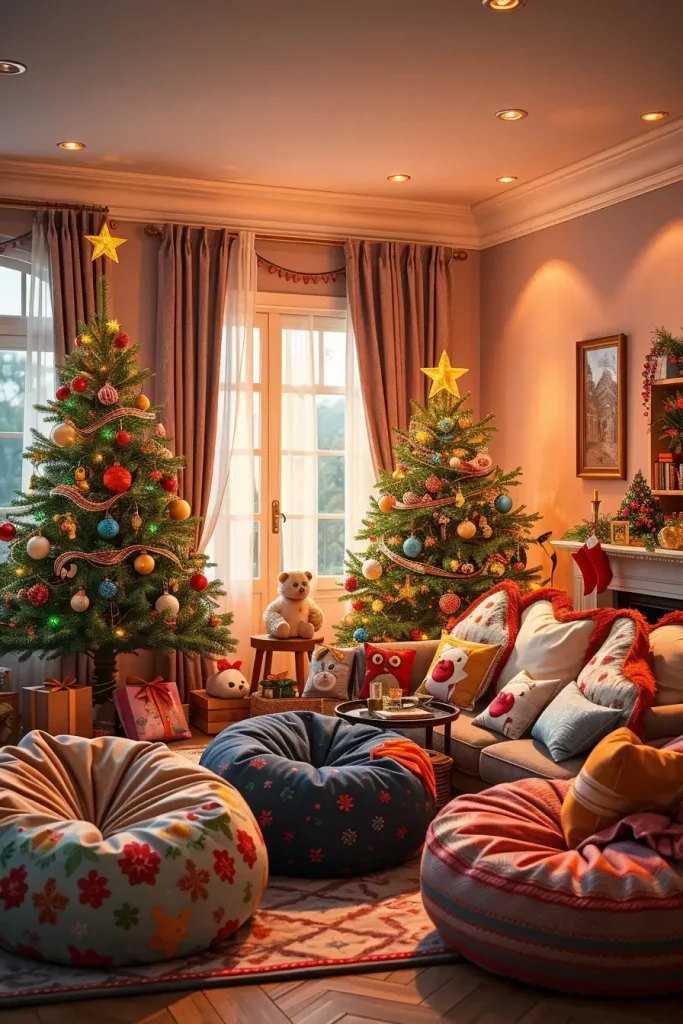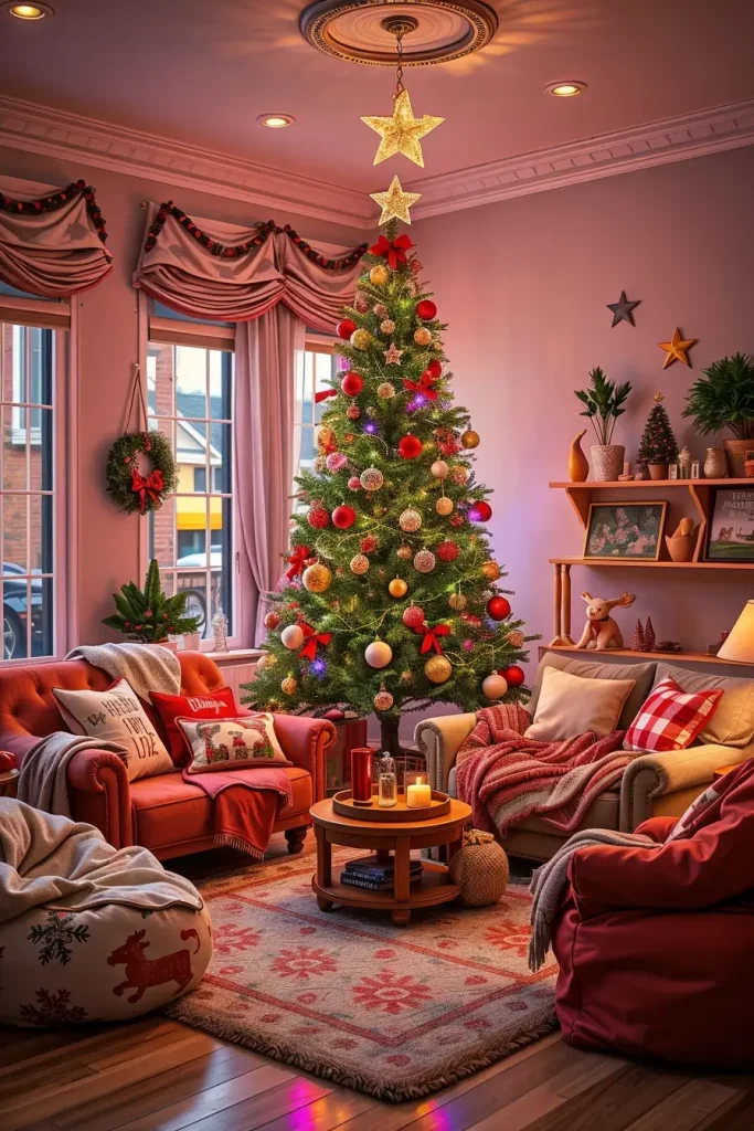 As an individual, I enjoy the use of novelty lights in themed arrangements. Indicatively, snowflake decorations with icy blue cushions and a faux fur carpet would make the theme of winter wonderland inside. According to HGTV, themed lighting assists in narrating a story in the design of holidays, which makes the decoration memorable.