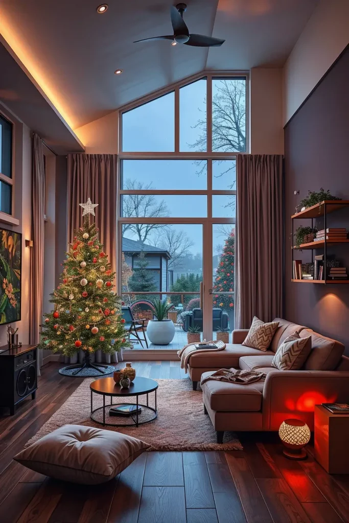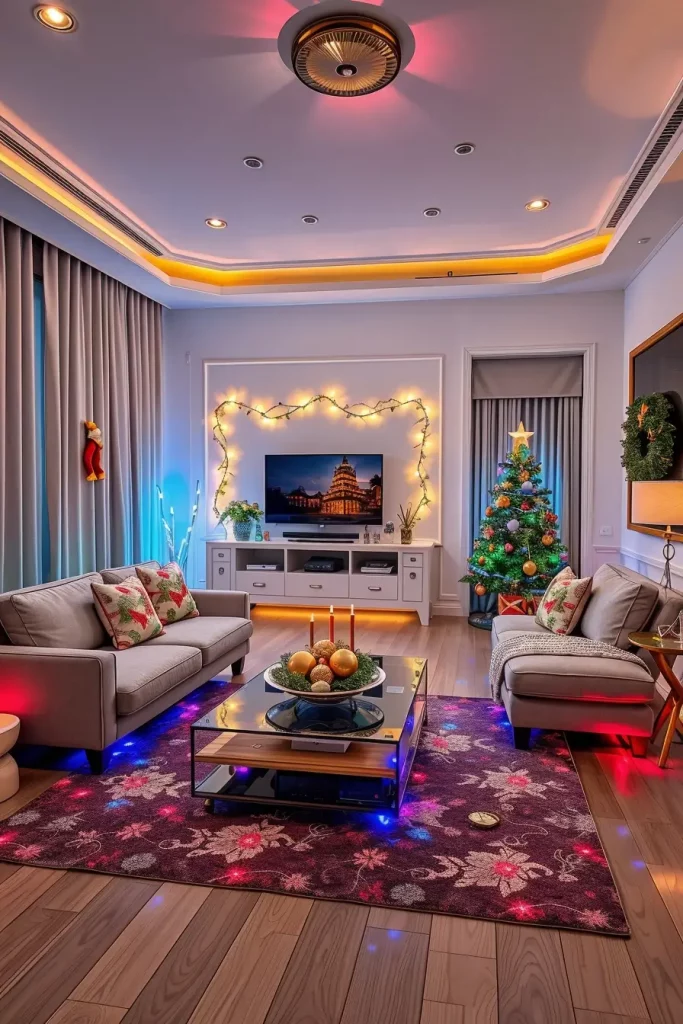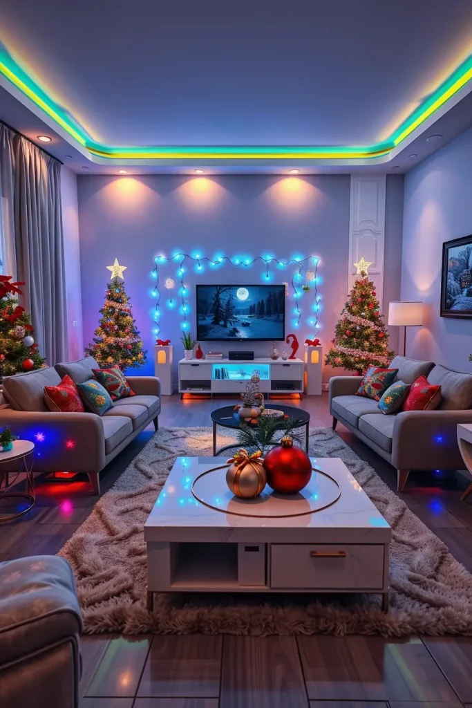 The use of color changing lights is emerging as a popular modern decoration in 2025. I adore them as they can be used both inside and outside since they are flexible as you can make them traditional red and green or change to icy blues and whites to get the winter wonderland look.
